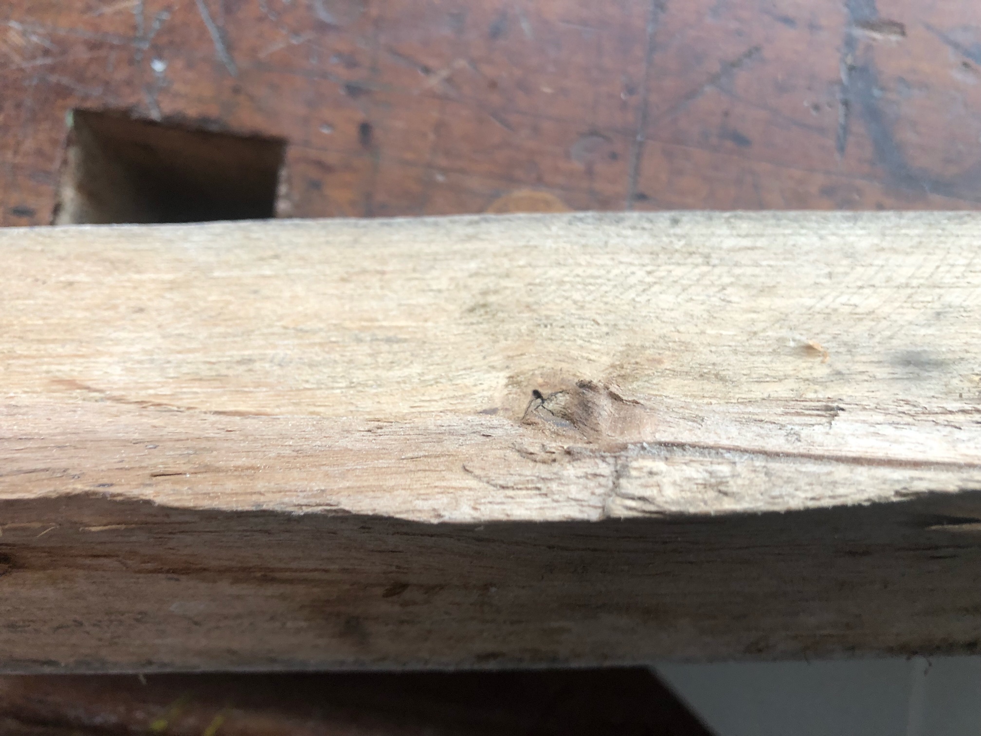 Leider war das Ausgangsmaterial doch nicht perfekt (welches Holz ist das schon?), zu erwähnen wären in diesem Zusammenhang zum einen die 4 Äste, die schön mittig über den gesamten Biegebereich verteilt waren, sowie das ungleichmäßige Verhältnis zwischen Splint- und Kernholz.