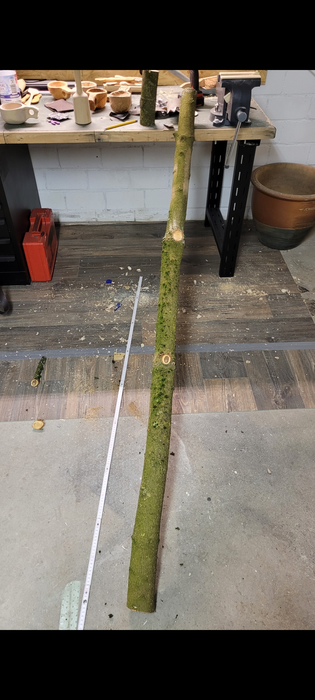 Ich denke, dass ich dann erstmal auf 170cm kürze und die andere Seite des Stammes zum üben nehme. Diese hat keine Makel. So bekomme ich immerhin mal ein Gefühl von der Praxis.