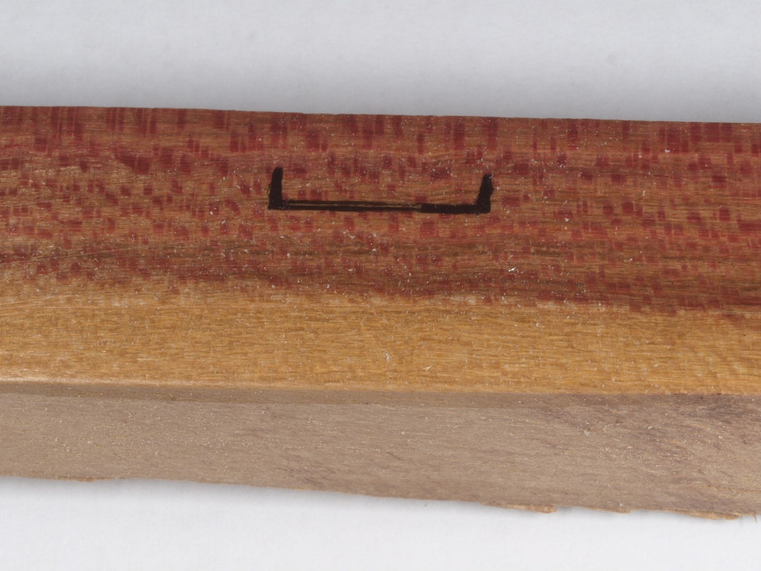 Das "Holz" ist abgelagert, frisch gesägt , geschliffen und angefeuert, sowie mit Weißabgleich und Macro fotografiert. Der eingezeichnete Maßstab beträgt 1 cm.