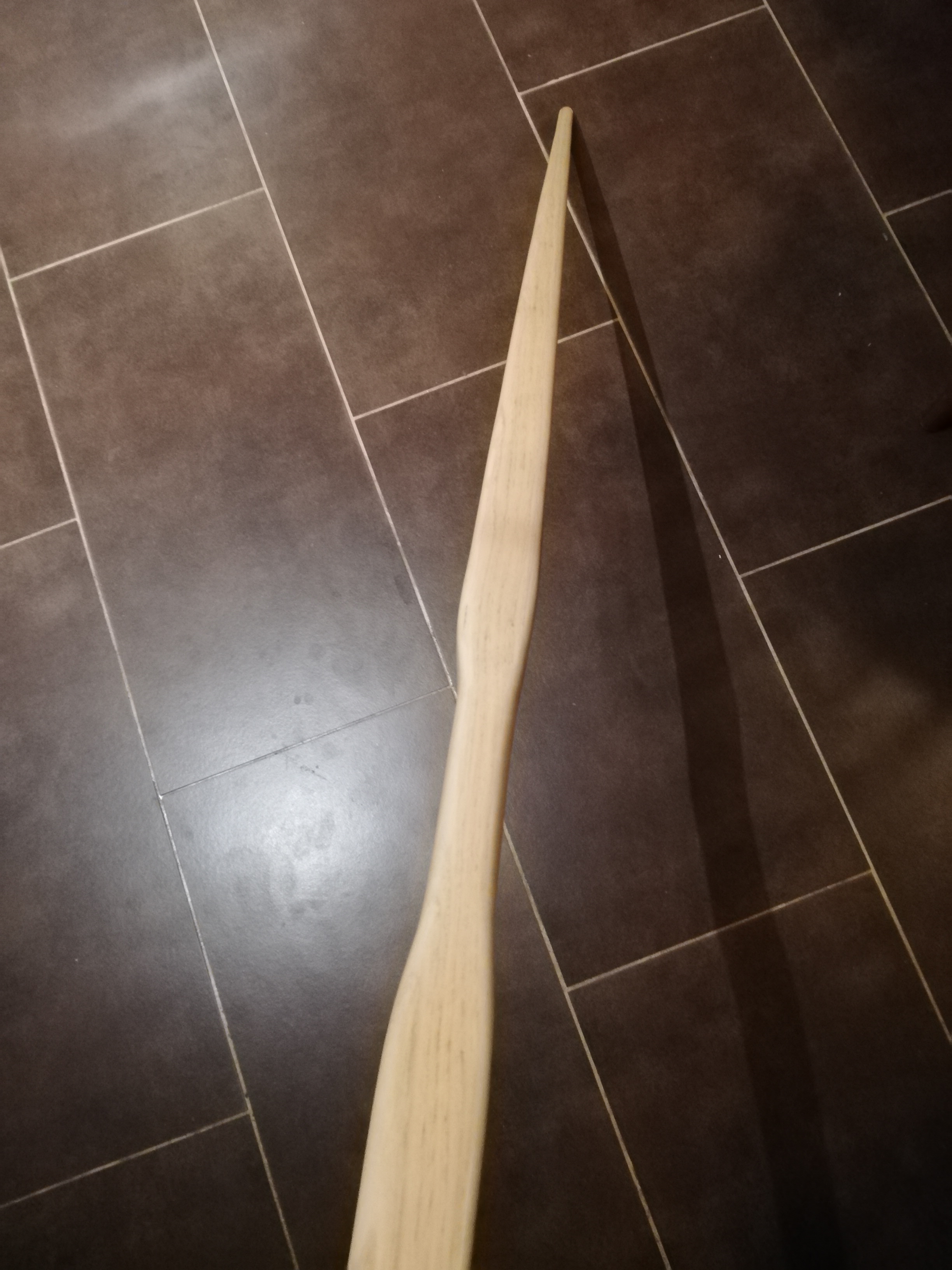 Ich hab mich dann für den zweiten Versuch für einen Anfänger freundlichen Hickory 4kant Stave entschieden und los gelegt. Immer mit ein wenig Angst vom Bruch des letzten bogens.