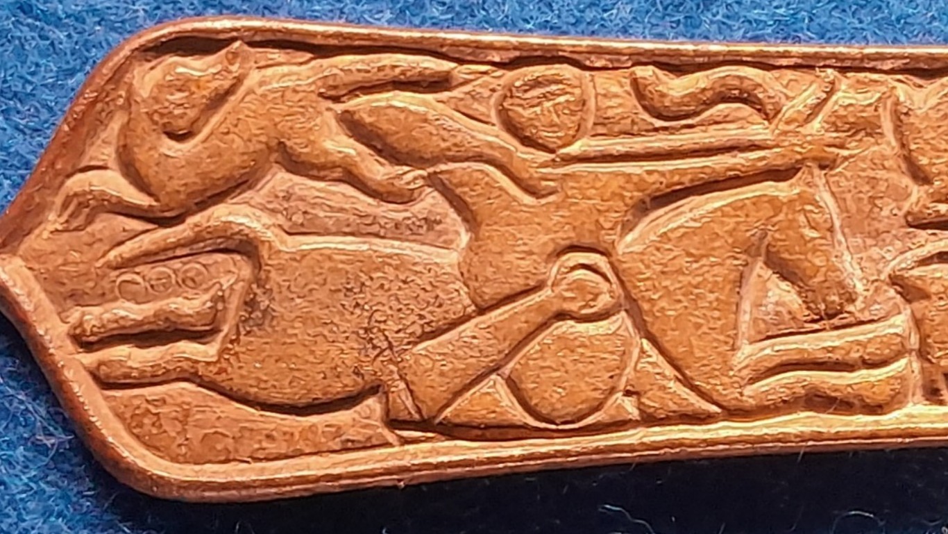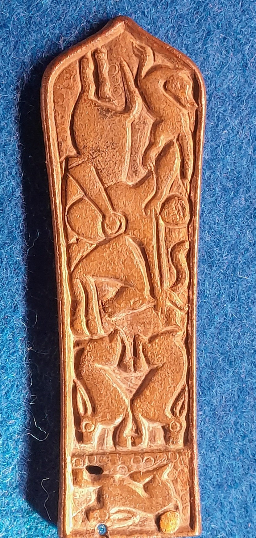 Ein Gürtelbeschlag mit der Darstellung eines Awarischen Bogenschützens. Achtet auf die Haltung, Bogenhand, Pfeilspitze, Köcher...