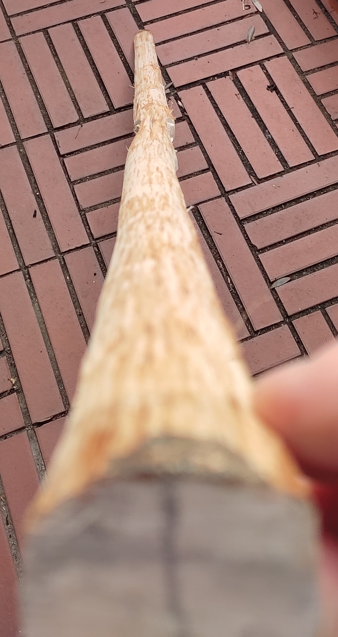 Das ich Hasel und Fichte genommen habe war zum einen in der Nähe, also kurze Strecke und zum anderen gibt es nicht mehr viel Auswahl. Die Eschen haben sie bald alle gefällt oder sie sind umgefallen(besonders die jungen) Ahorn stehe nicht wirklich brauchbare junge Bäume hier herum und Ulmen sind rar geworden . Zum anderen wollte ich nicht schon wieder einen Schwarzdorn oder einen Weißdorn fällen, das wird sonst langweilig. Die heb ich mir lieber für andere Projekte auf