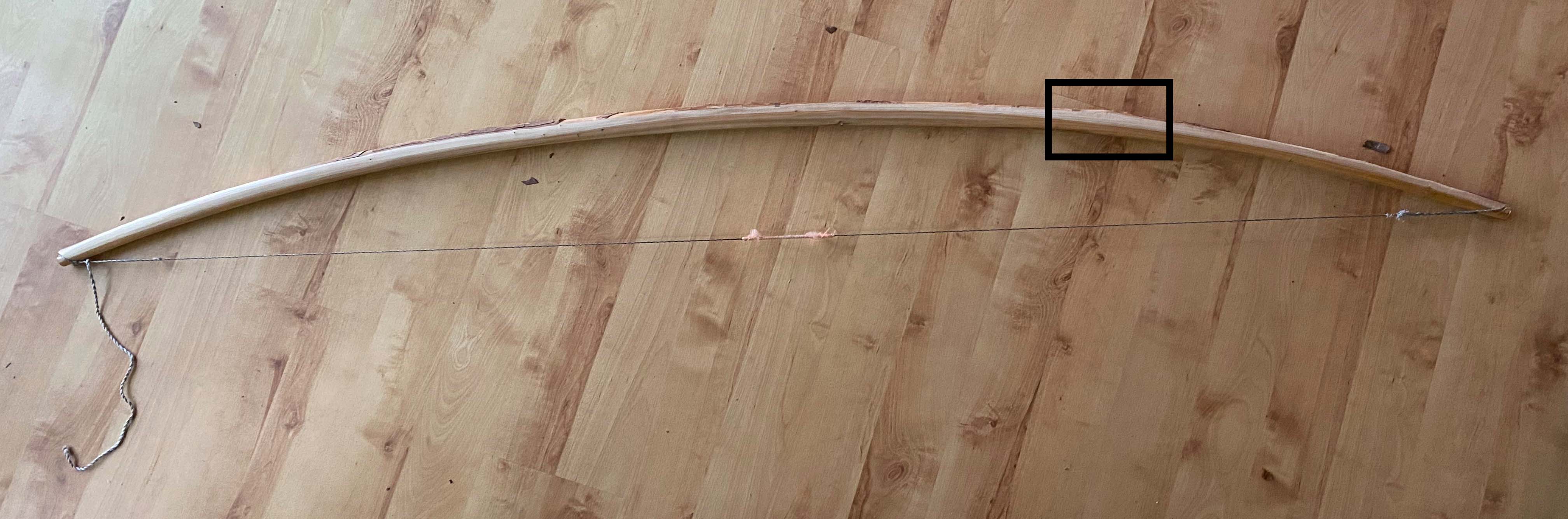 Der Bogen hält die Standhöhe trotz der Bruchstelle problemlos, dürfte im Moment noch weit über 100 lbs bringen und das sonstige Holz sieht mir recht gut aus, besser als beim letzten Versuch.