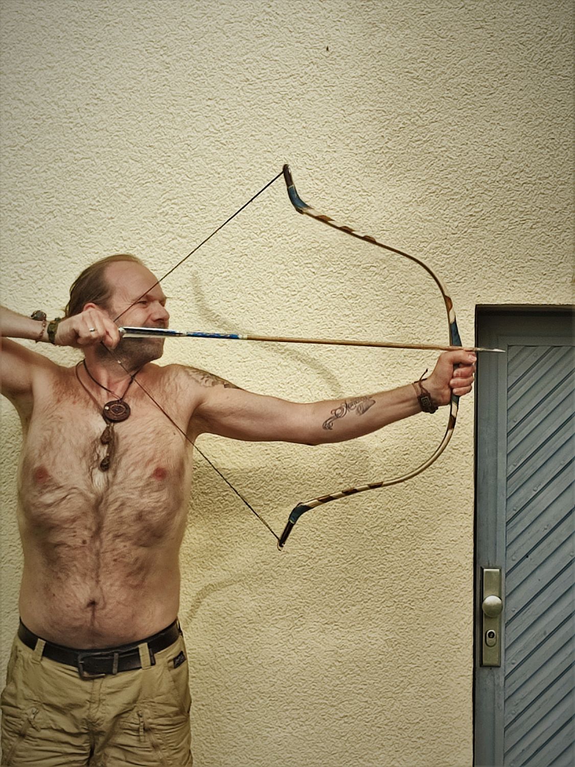 hier stelle ich euch ein Osmanischer Reiterbogen vor, der von der aus der 4er Serie stammt, die ich vor ca. 3,5 Jahren angefangen habe. Der lag jetzt 3 Jahre im Keller, da beim öffnen des Bogens das Horn am Kasanauge abgeplatzt ist(war wohl ein Fehler im Horn und oder die Verklebung war nicht stimmig) Ich hatte 3 Jahre lang keinen Lust den Bogen zu reparieren und jetzt hat es mich wieder gepackt, den Bogen fertig zu stellen. So habe ich das alte Horn vom Bogen entfernt und ein neues Horn eingepasst und eingeklebt. Das hat alles soweit gut gepasst und beim einschießen nach 20 Pfeilen hat das Horn im Saal versagt und ist im Horn selbst delaminiert....