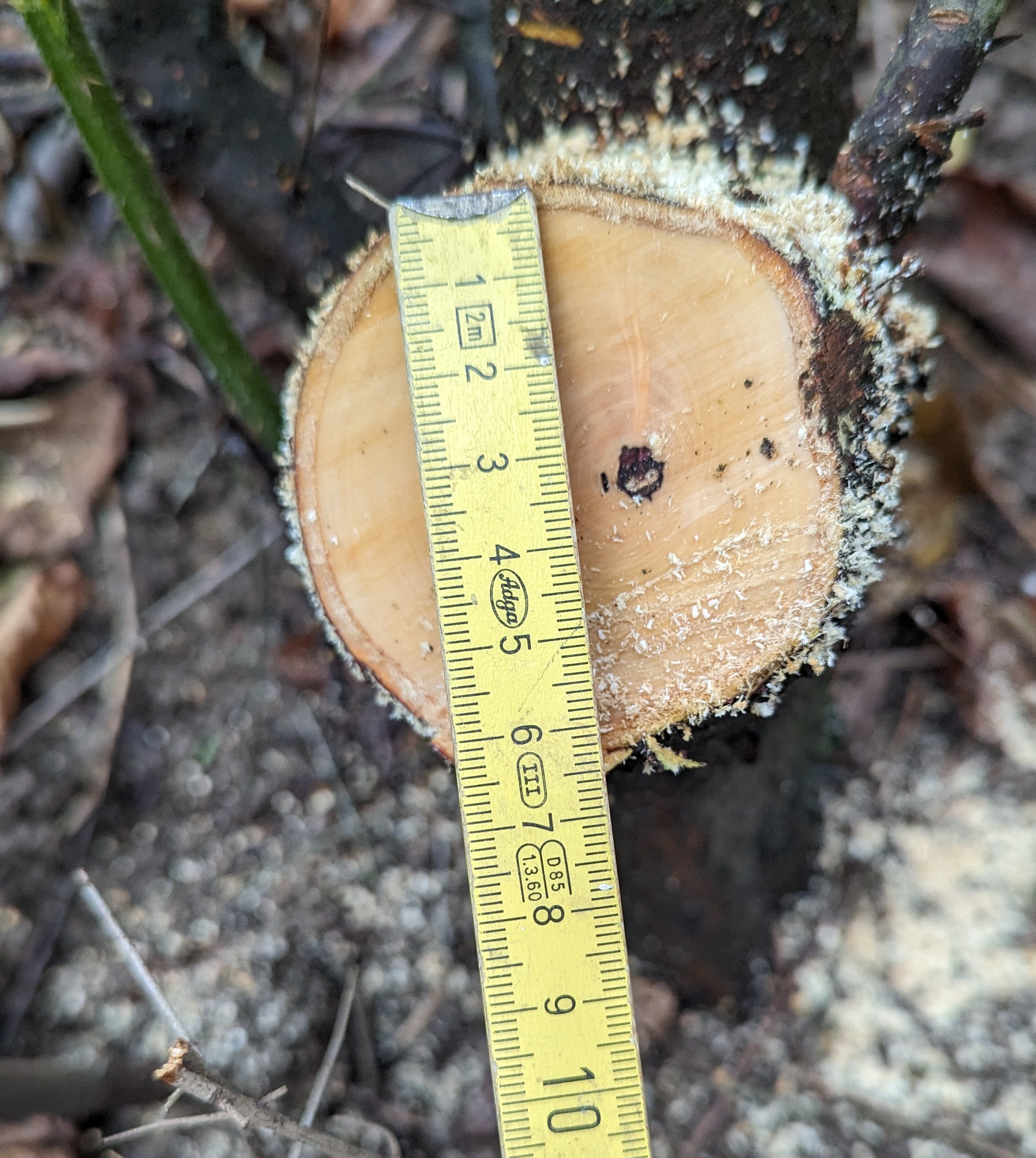 Ganz sicher bin ich mir nicht. Das mit dem Kern und Splint hat mich auch stark verunsichert. Das Bild vom Abschnitt ist ca 30sec nach dem Sägen gemacht. Eine Minute später sah es schon ganz anders aus. Meine Theorie dazu war bis jetzt das sich dann nur der Kern noch weiter dunkel färbt und der Splint hell bleibt. Dort wo ich den her habe wächst definitiv Sanddorn. Vielleicht hab ich aber auch was erwischt was sich dazwischen gesellt hat. Das Holz hat auf jeden Fall viele sehr scharfe Dornen. Ich meine ich hatte auch kleine Knospen gesehen. Die Krone liegt noch im Garten. Wenn das Wetter es zulässt werde ich nochmal Fotos nachreichen.