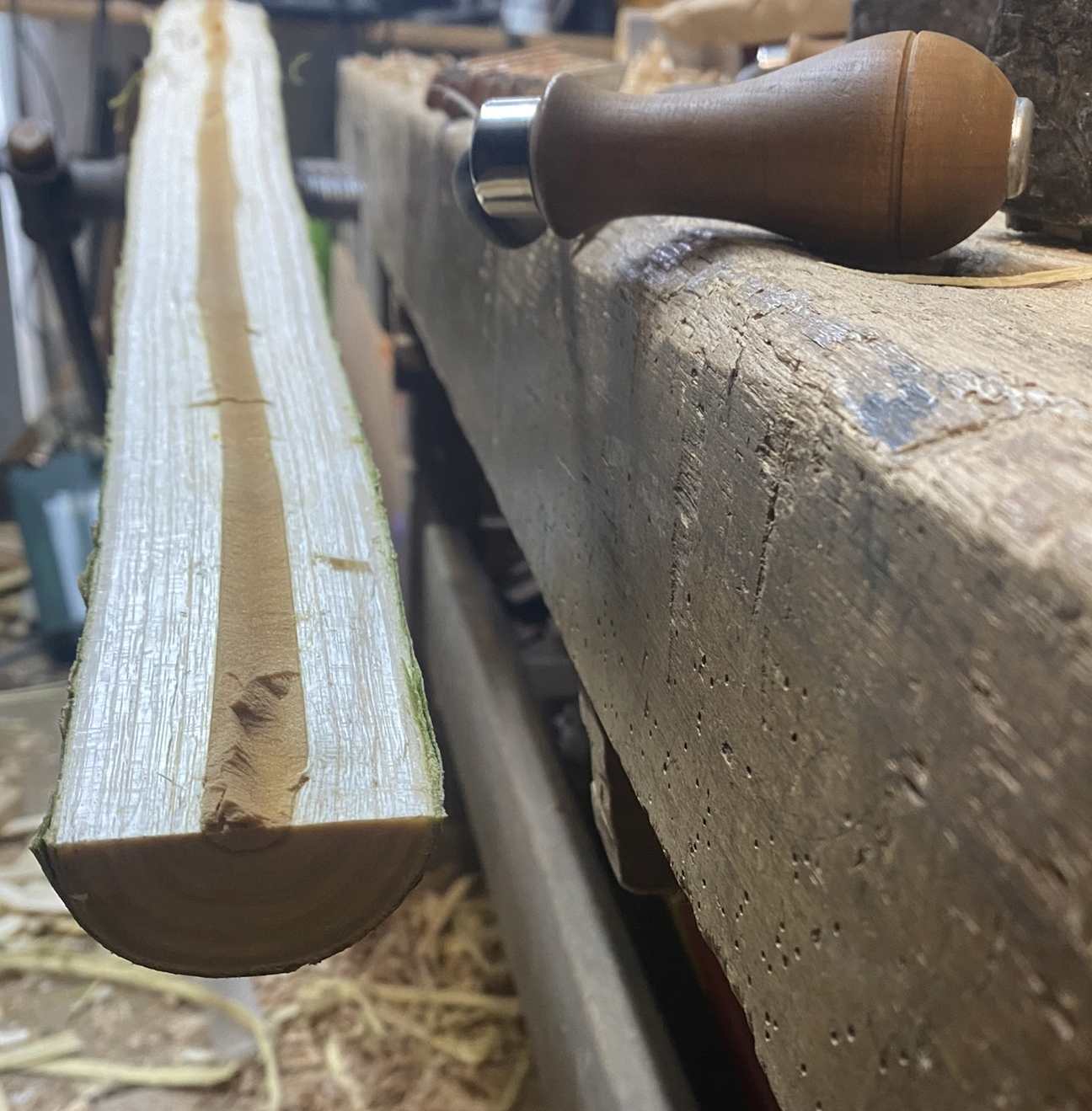 Leider habe ich kein Ulmenholz gefunden, aber auf einem Parkplatz bei uns wuchern Robinie und Götterbaum. Und da die Robinien noch zu jung sind und praktisch nur aus Splint bestehen, wurde es eben der Götterbaum.