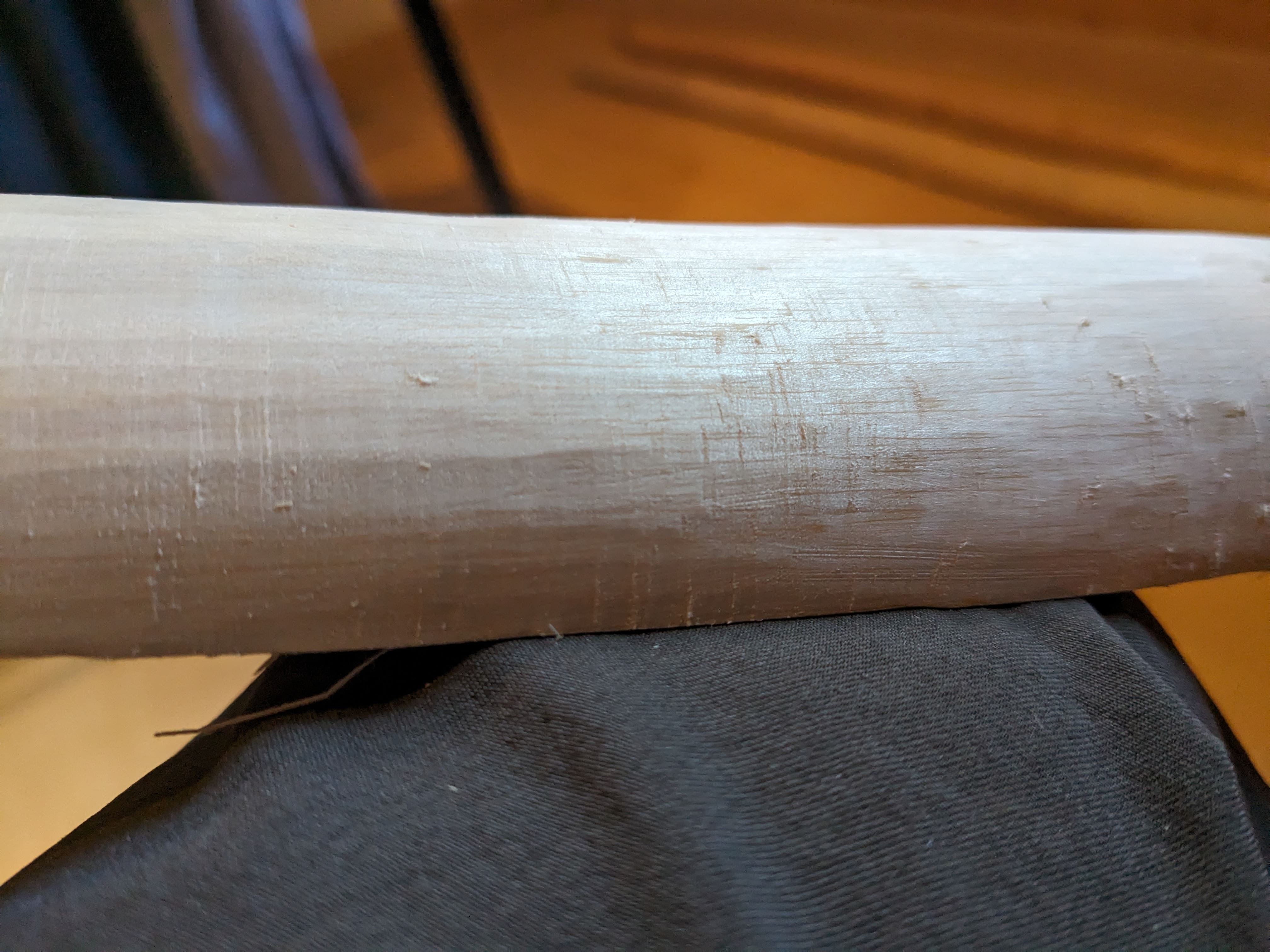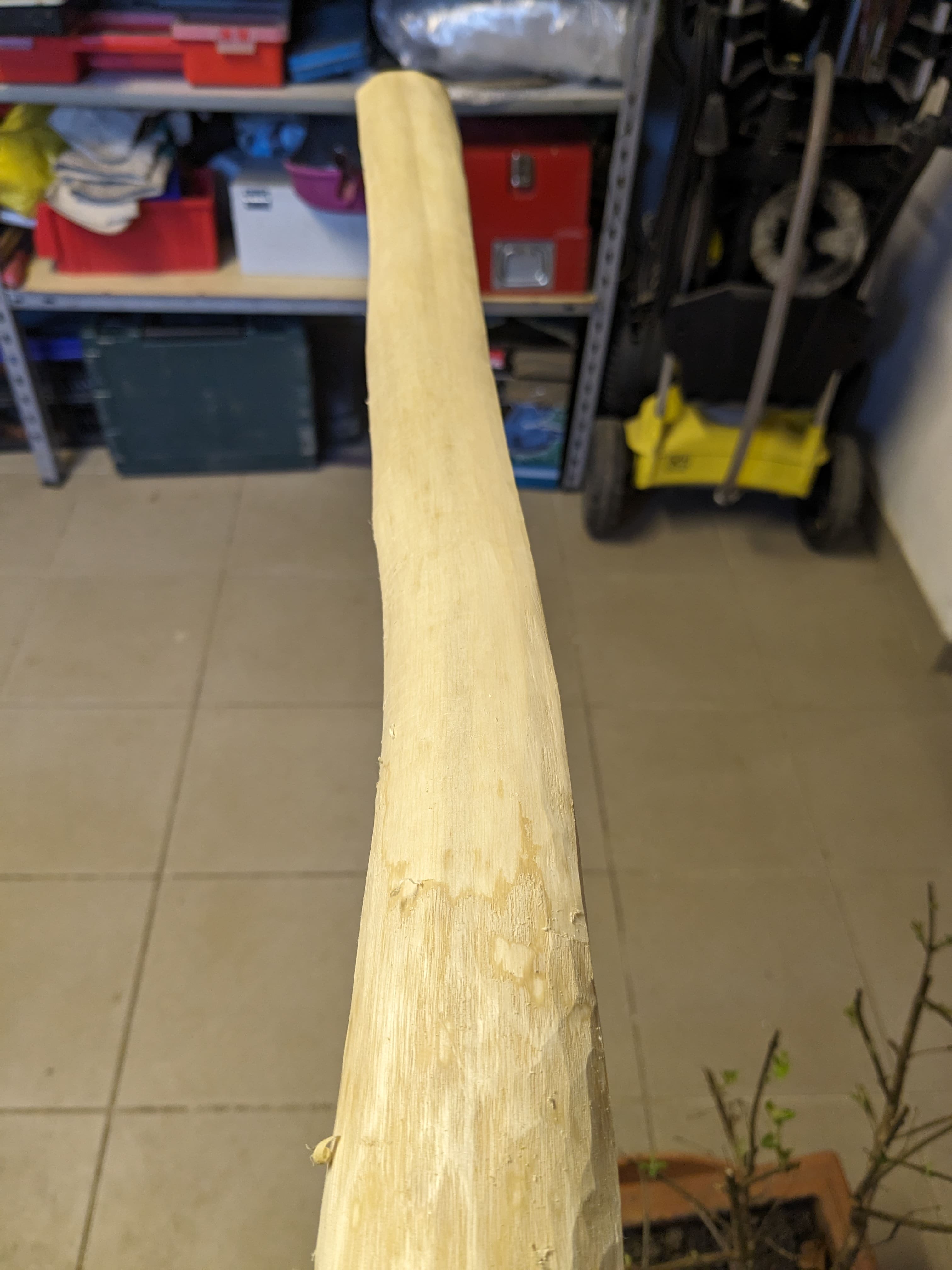 Ich wollte den Stamm gern retten und dachte es wäre gleich mal ein angemessenes Übungsszenario. Dabei habe ich sechs Jahresringe vorsichtig mit dem Zugmesser und den letzten mit der Ziehklinge abgetragen.