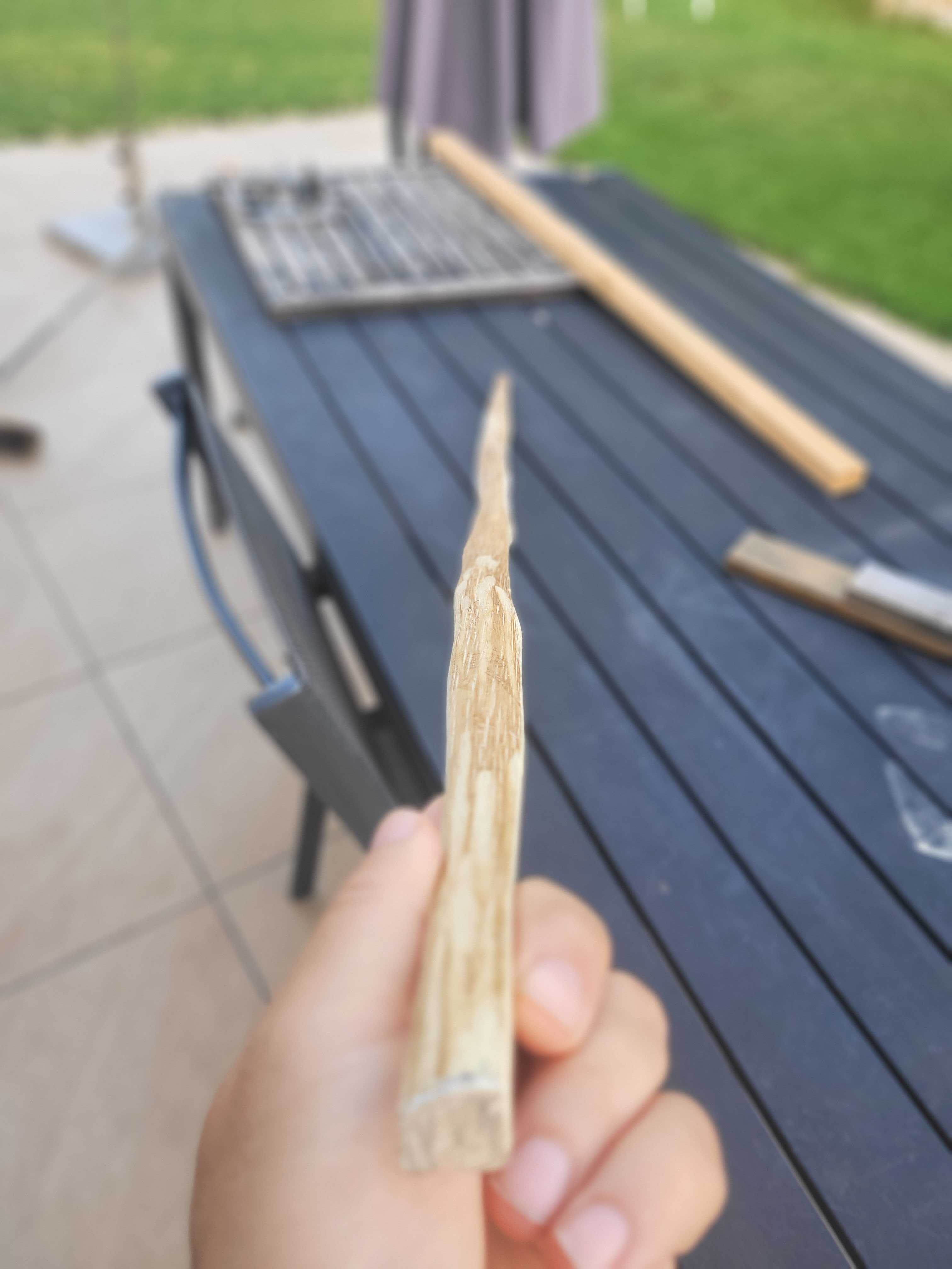 Wir sind in Garten, haben Hölzer ausgesucht, zugeschnitten, mit Leim die Enden (youtube Video) verklebt ....