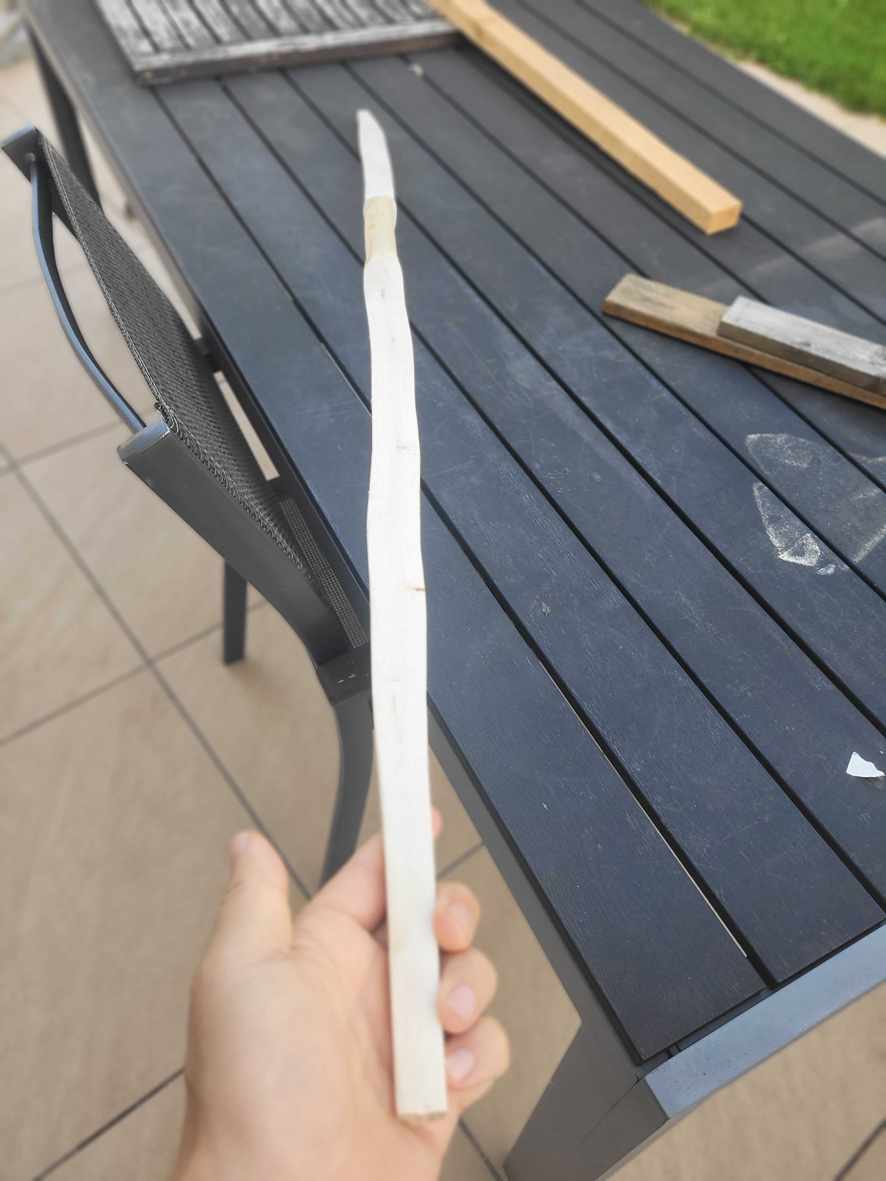 Dabei ist jedenfalls zu beachten dass du an der Stelle, wo der Wurfarm beginnt schmäler zu werden, ihn auch gleichzeitig (oder kurz vorher) dicker werden lässt. Nach der Regel kannst du selbst am besten beurteilen wie viel Holz weg kann 😊