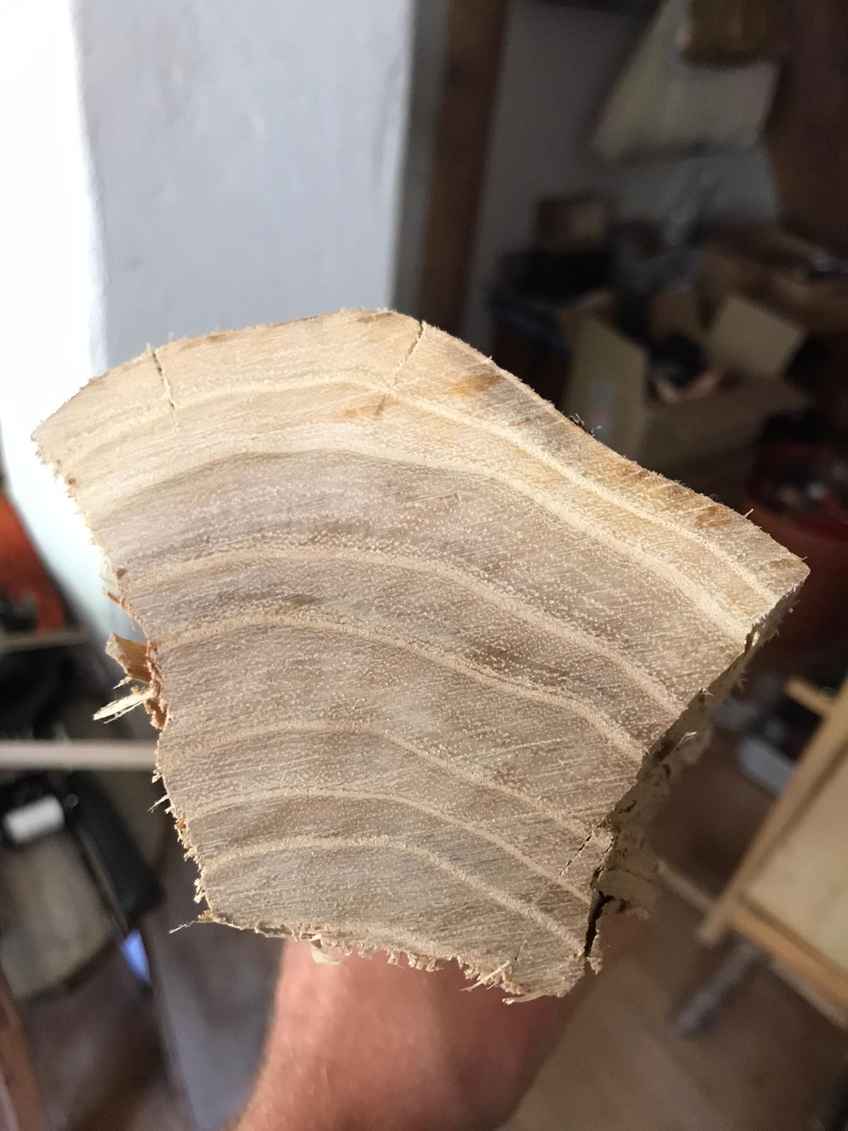 Nun bin ich über Tipps (Bauform usw.) zu dem Holz dankbar. Hier ein Querschnitt: Die Ringe sind teils 1 cm groß. Ist das normal bei Goldregen?