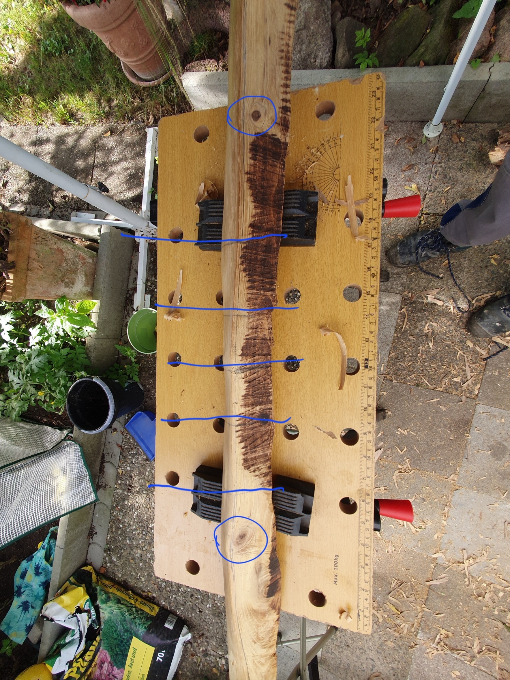Ein nicht unübliches Verfahren bei Vorhandensein von Ästen ist ja die Breitenzugabe im Wurfarm im Maß des jeweiligen Astes.