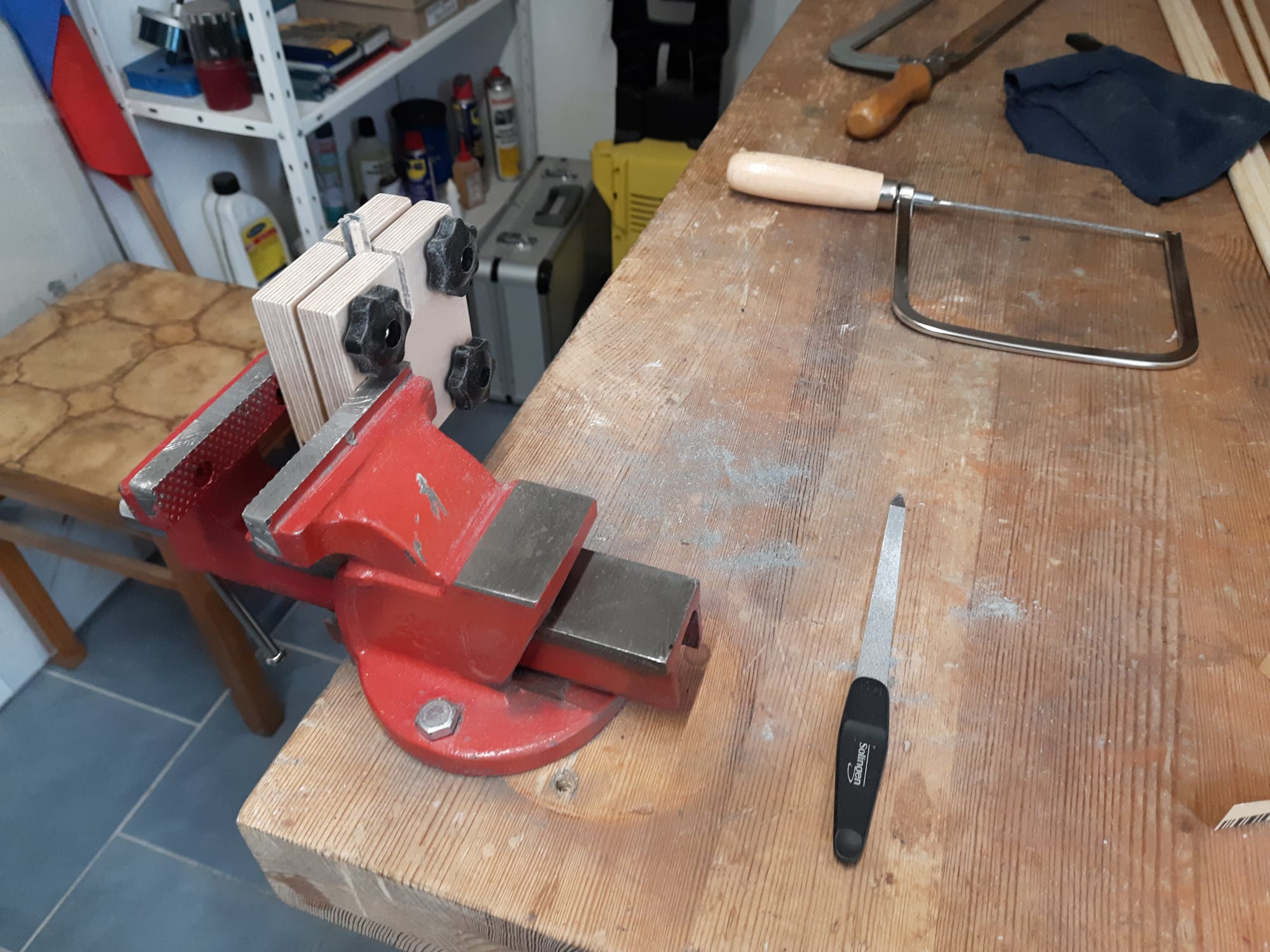 1.) Werkbank, Schraubstock, Schraubzwingen oder anderes Klemmwerkzeug - und wer hat: eine Staubabsaugung (das Inlay bearbeiten ist eine elende staubige Dreckerei