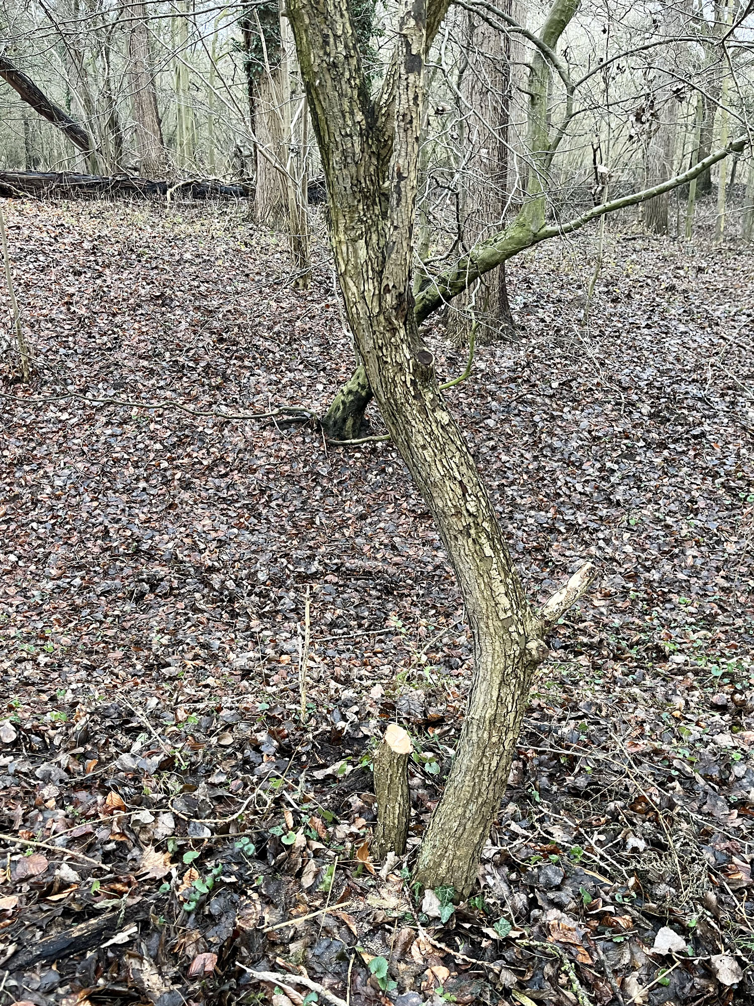 Also bei diesem Weißdorn bin ich mir wirklich nicht sicher... Habe noch etwas mehr vom Bast weggekratzt und die Eindringlinge waren fleißiger als gedacht. Beim besten Willen, sehe ich nicht, wie der Ring am Rücken halten soll