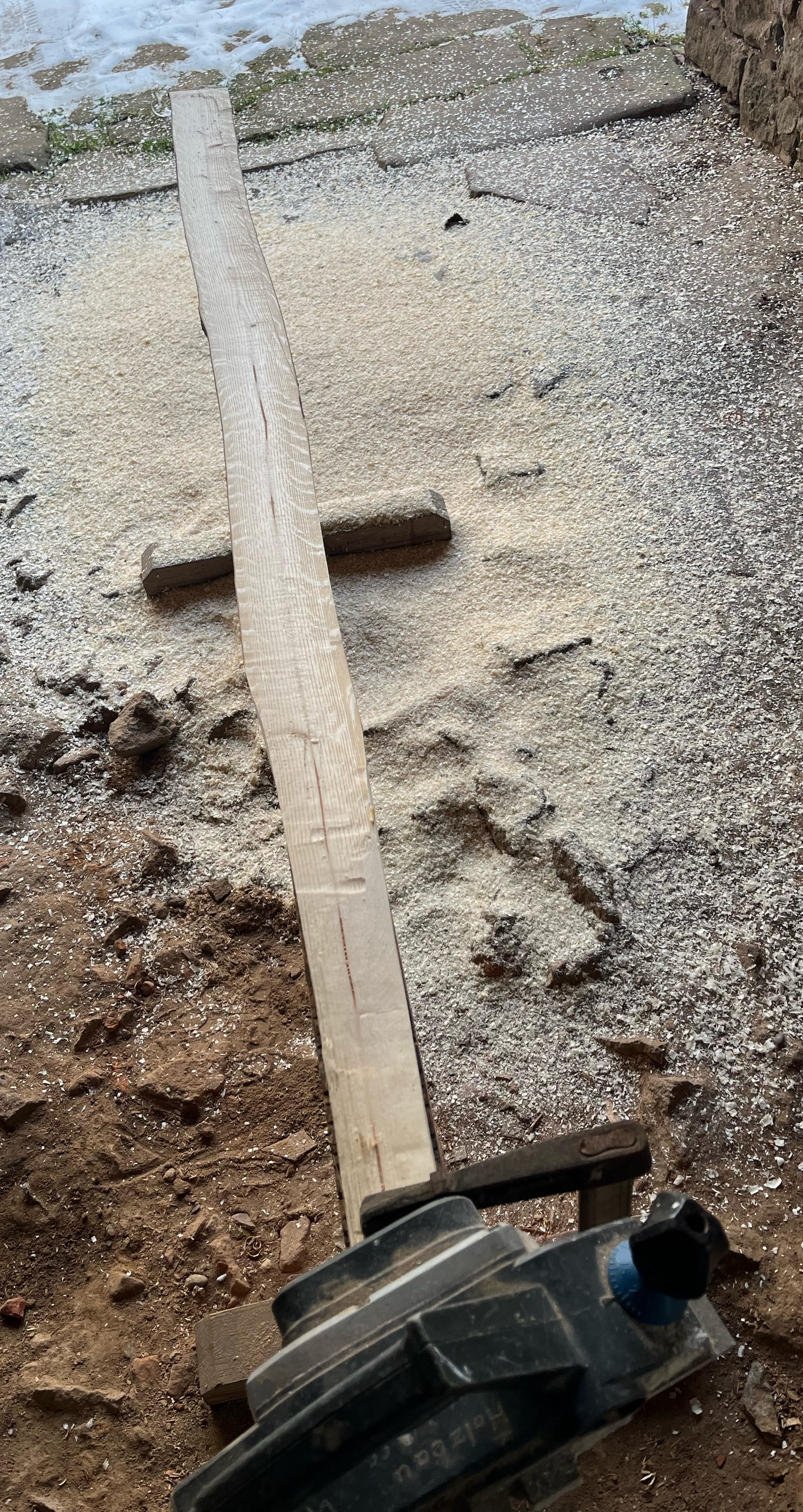 Plan ist ein Mölle aus Hasel mit getempertem Bauch und reingeföhnten Reflex im Biegebereich und Holunderfacing an den Needles, um die mitbiegen zu lassen. Bisschen fancy werden muss ja, bei euren ganzen Projekten hier schon wieder komm ich mir ja sonst wie damals mit 8 vor, als ich ne Paketschnur an frische Haselstöckchen gebunden hab