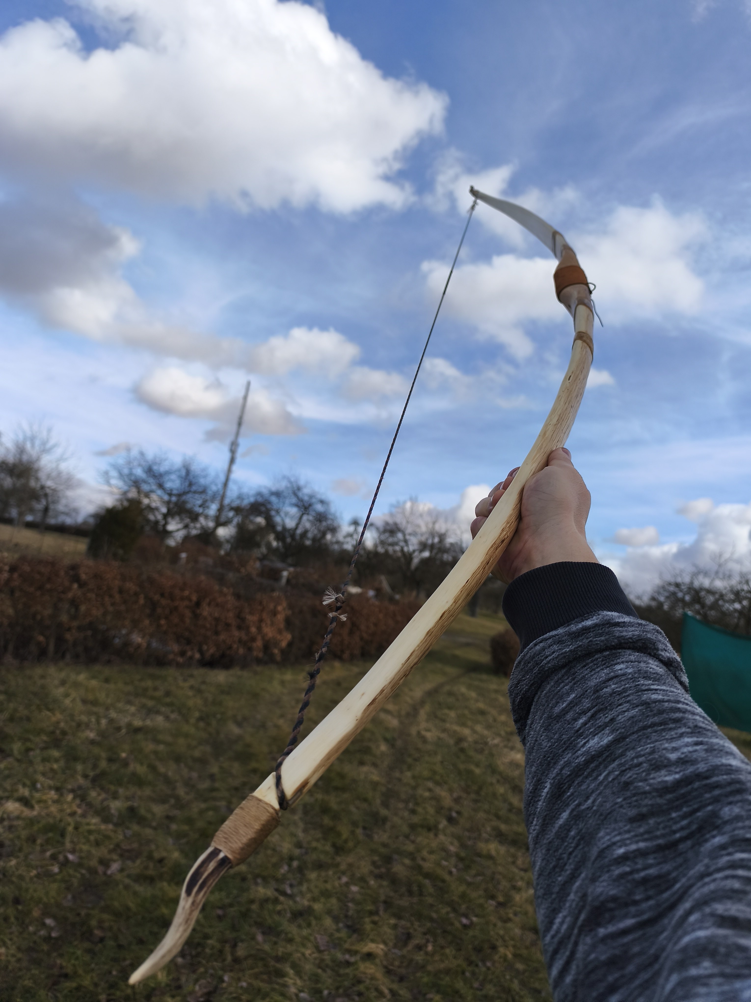 Der blanke Bogen wog 220g, also ohne Leder, Fell und Sehne.