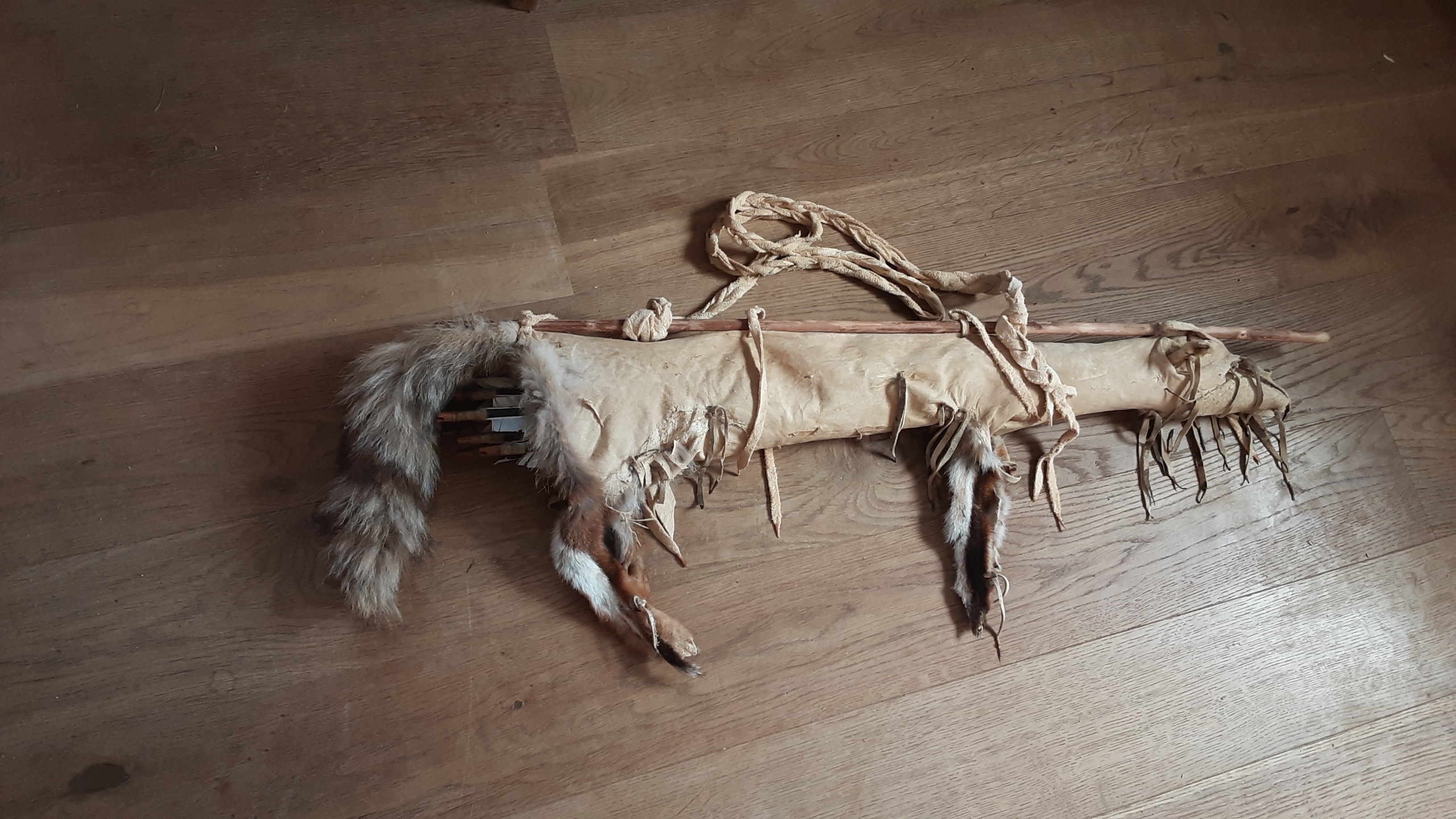 Habe beim Räumen einen Fuchsbalg gefunden und diesen dann als Grundlage für einen leichten kleineren Köcher benutzt (Fassungsvermögen 7-9 Pfeile).