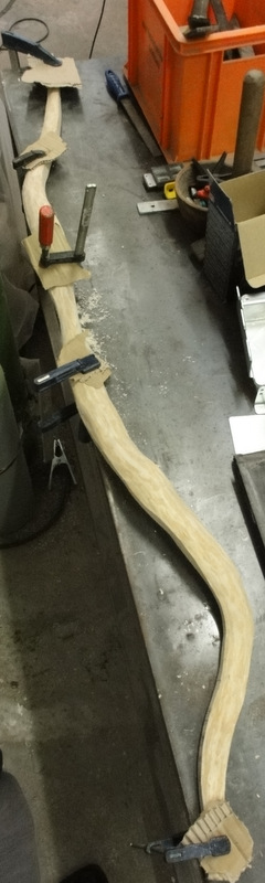 Hallo zusammen Hier wird ja schon fleissig gespalten und getrocknet. Gestern hab ich meinen Hasel geholt. 193cm lang, 10 cm dick und ziemlich schwer und nass >:) . Aus dem Sapling habe ich nun mit der Bandsäge 2 Rohlinge gemacht und in Form gespannt. Diese trocknen nun mind. 2 Wochen in der kalten ...