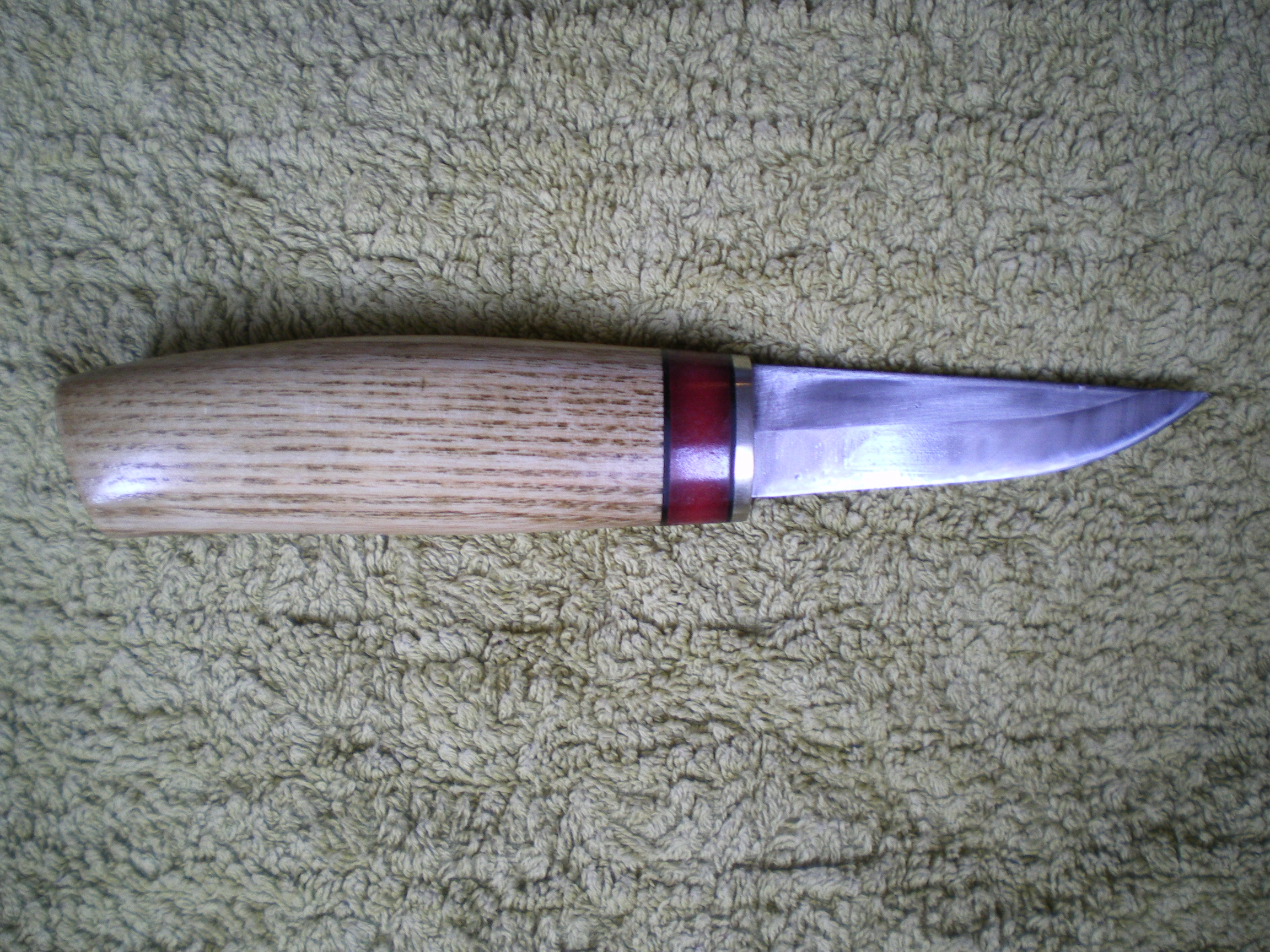 Das Ipeholz meines selbstgeschmiedeten Messers stammt aus dem Brennholzkasten meines Schmiedemeisters. Ipe wird z.B. für Terassenholz kultiviert.
