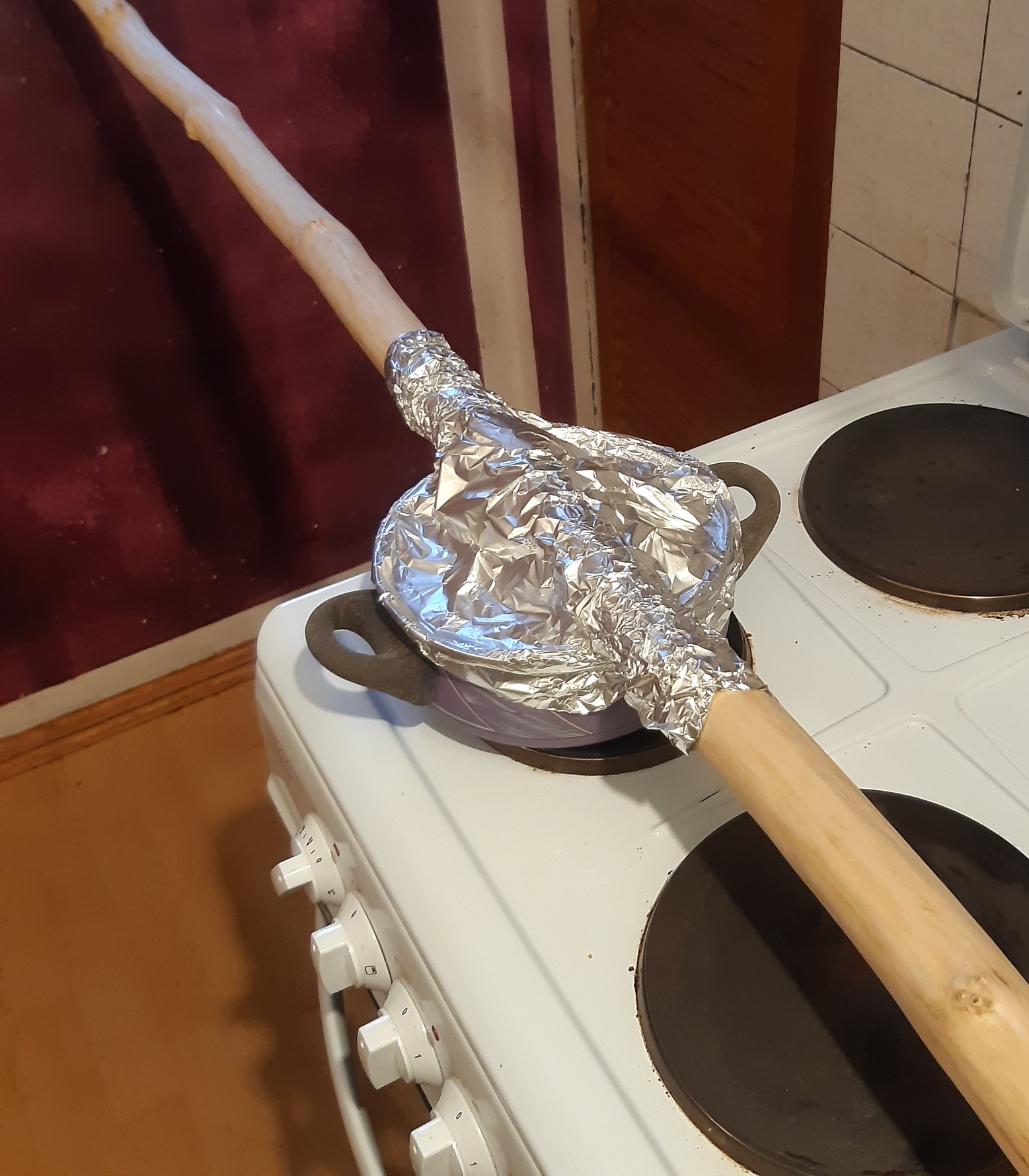 . Nimmst du mehrere Schichten Alufolie? Oder hast du eine breitere Rolle?Ich habe bis jetzt immer versucht mit einem Stück auszukommen, damit keine Spalten entstehen. Aber dann reicht es für einen kleinen Topf gerade so.