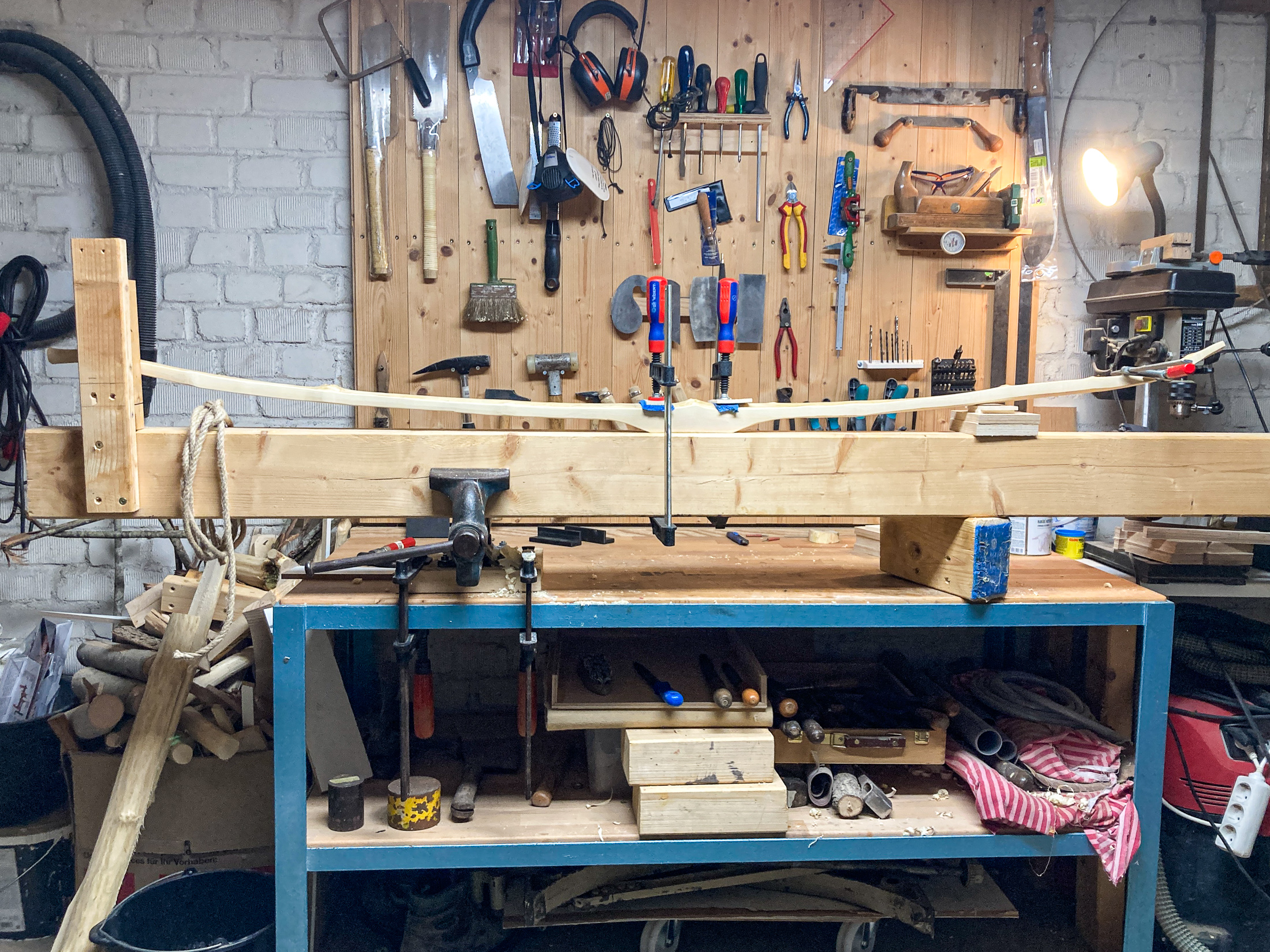Leider hat mich ein fieses Virus ausgeschaltet und ich muss mal schauen was bis Sonntag noch drin sitzt. Am liebsten würde ich den Holler ins Ziel bringen, aber da ist noch einiges zu tun. Der totgetillerte Hartriegel biegt sich nun besser, so richtig zufrieden bin ich trotzdem nicht. Der Bogen ist ...