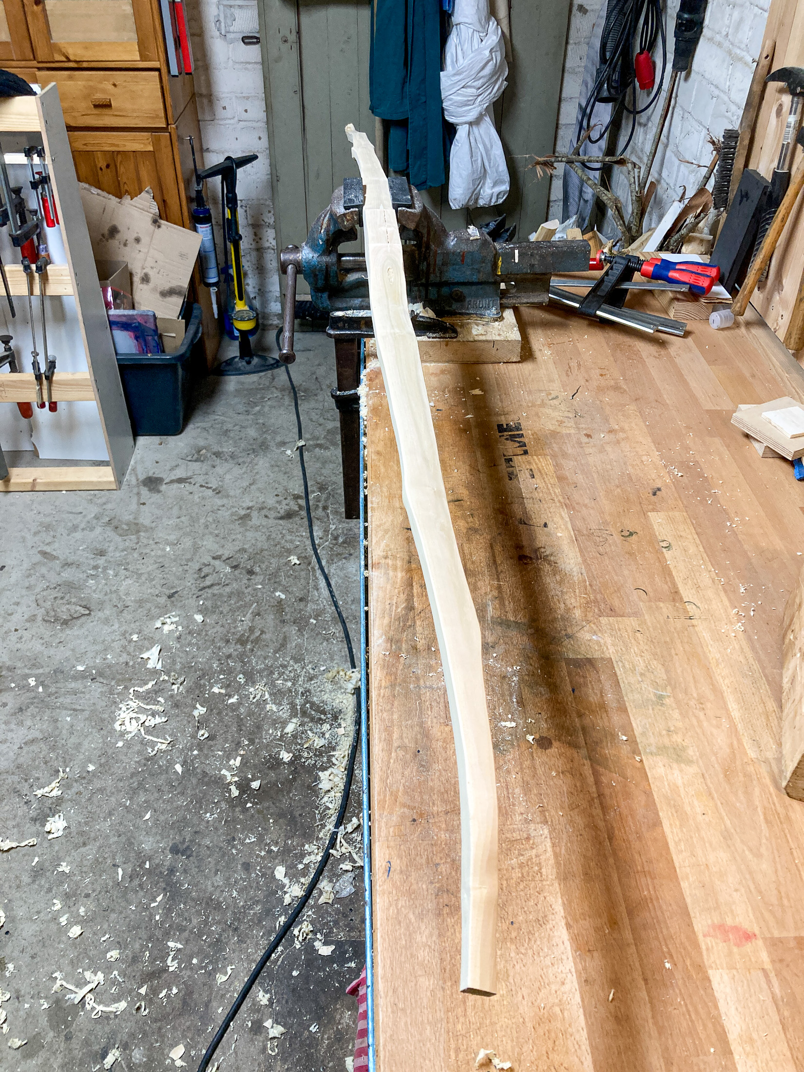 Hi zusammen! Mein Sap hat schon am 6. Januar deutlich abgespeckt und eine grobe Bogenform bekommen, um das seitliche Profil zu korrigieren wurde er dann auf einem Balken fixiert. Leider war ich so versunken in die Arbeit, dass mit erst am Ende eingefallen ist Fotos zu machen. Sieht jetzt schon ganz ...