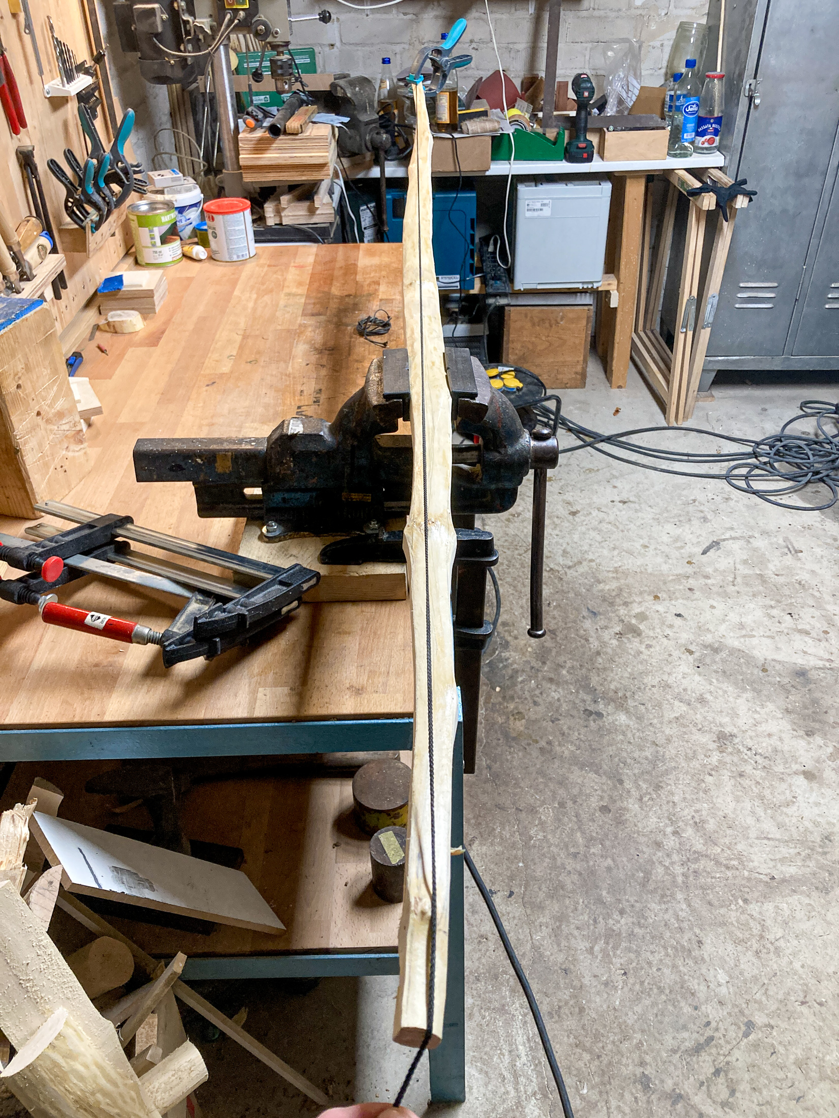 Vielen Dank für den Tipp Neumi, das hat super geklappt und sitzt wirklich gut! Zunächst gings aber an den anderen Bögen weiter... Beides beginnt sich zu biegen und hat vorgestern über Nacht kein Gewicht mehr verloren. Vorher hat das Holz bei 18 Grad und um 40% Luftfeuchtigkeit allerdings auch eine tr ...