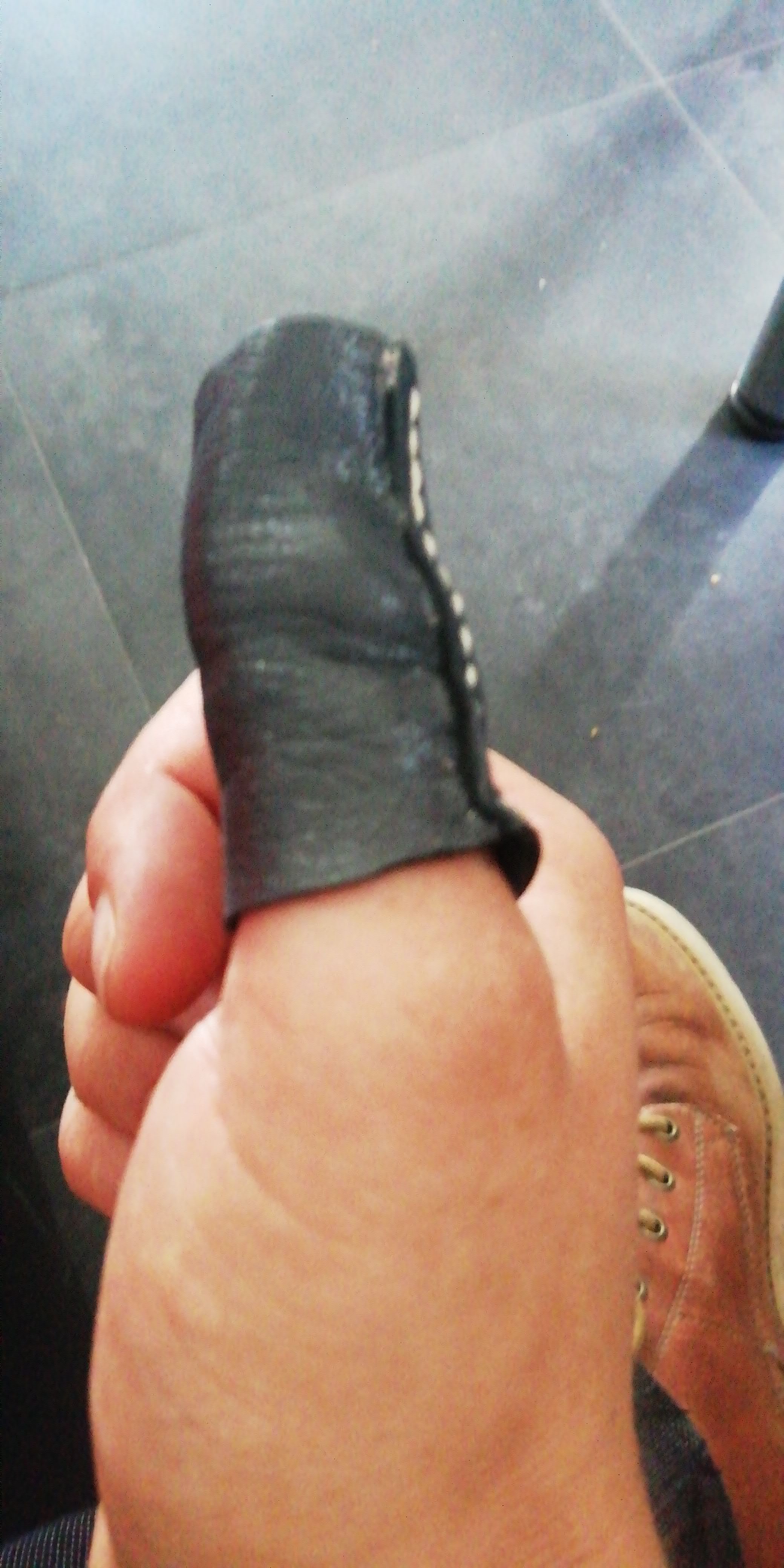 So hatte ich immer noch die Kontrolle des Ablaßvorgangs durch den Daumenkontakt, weiterhin die ursprüngliche, gleichmäßige Ablauffläche des Daumenrings bei geringerer "Störung" durch den Schmerz am Daumen.