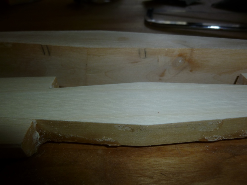 Dann muss ich ja auch noch die Tips verstärken. Momentan ist das Holz dort 14mm stark - benötigt werden rund 17. Dazu eine Frage: Muss ich die Verstärkungen zwingend auf der Rückenseite aufkleben oder ginge auch die Bauchseite? Auf dem Foto sind beide Möglichkeiten abgebildet. An die Bauchseite kommt man besser dran zwecks planschleifen...