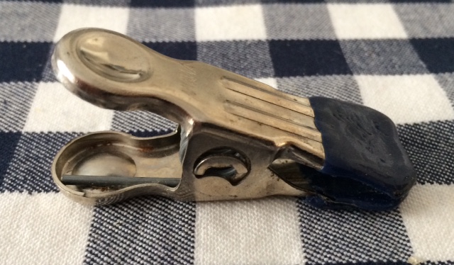 ich finde diese Klammer hier recht praktisch für einige Arbeiten. Leider ist sie nur knapp 5,5cm lang und das Maul öffnet sich vielleicht gerade 20mm weit. Ich fände es toll, sowas in größer zu haben. Kennt jemand die Fachbezeichnung? Ich vermute, das hier ist tatsächlich eine Wäscheklammer, weiß aber von Bildern, dass es Ähnliches auch in größer gibt.