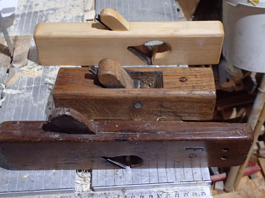 Meine Pfeilhobelsammlung ist mal wieder gewachsen. Ich hab noch einen Ulmia Simshobel rumliegen gehabt und den hab ich die letzten Tage ein bissl umgebaut. Niedriger gemacht, eine Nut eingefraest und das Eisen umgebaut.