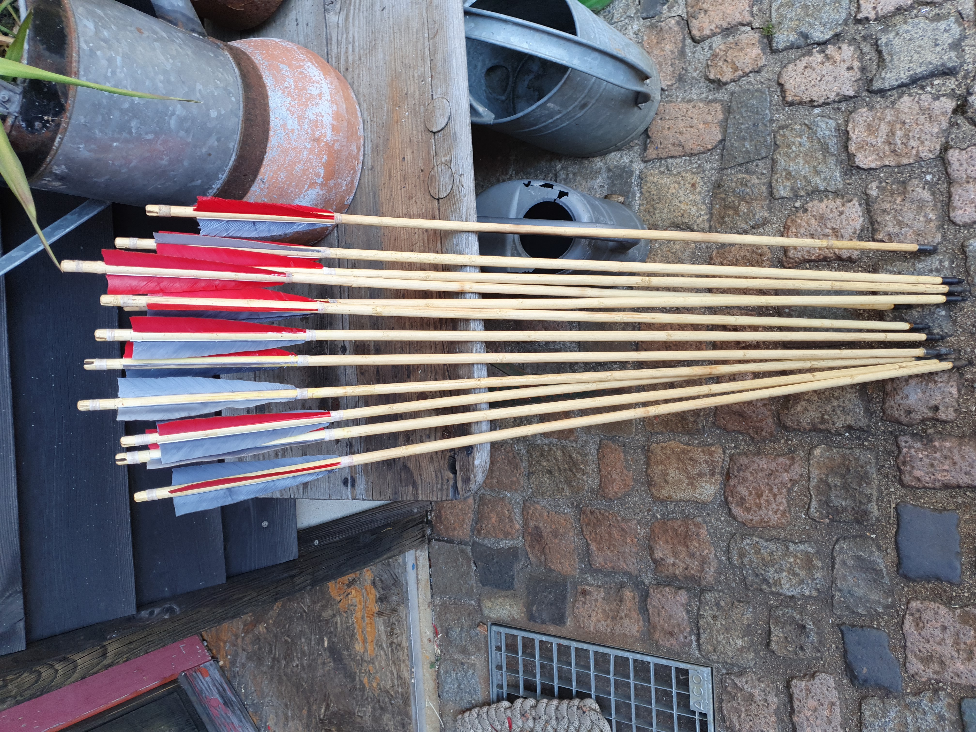 1/2 sheaf Warbow Arrows. 4 neu, der Rest bis auf einen neu befiedert. Die Gänse waren ein bissl zerfleddert