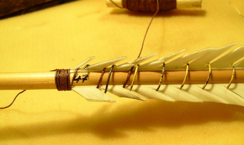 leider passiert es mir immer wieder das ich nach dem wickeln feststelle das der winkel zwischen 1. und 2. feder ein bischen anders ist als zwischen 2. und 3. feder. das kann ich aber erst feststellen wenn ich den fertigen pfeil drehe. solche sachen ärgern mich einfach.