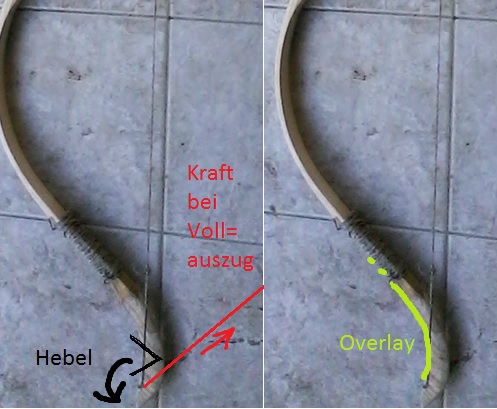 Was bis jetzt geschah: Also ich hab nen 4 cm Manau-Stab halbiert und "geköpft", den Griffbereich mit der HLP gebogen und die Klebefläche für das Griffholz mit Laminierharz stabiliesiert und wieder verschliffen, Griff aus Eschenholz gesägt mit Eulenkleber auf den Bogen geklebt und die Fadeouts geschliffen,die Shyr... aahhh...die "Hacken" am Wurfarmende sind ebenfalls aus Esche gesägt, Klebung zwischen den WA und den Enden verläuft keilförmig und die Klebeflächen wurden vor dem verkleben ebenfalls mit Laminierharz getränkt. Vom Profil her soll der Kleine 38 mm am Griff haben und dann liniear auf 2 cm am Gelenk kommen.