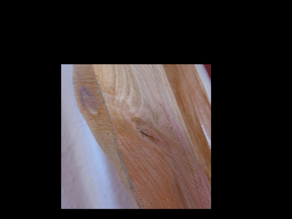 Ich habe ihn fast jeden Tag auf Anzeichen von Rissen abgesucht und hätte ihn dann sofort am Rücken einlackiert. In den letzten beiden Wochen hat er sich gaanz leicht verzogen und ich habe ihn mit der Schraubzwinge an einen Balken gepresst.