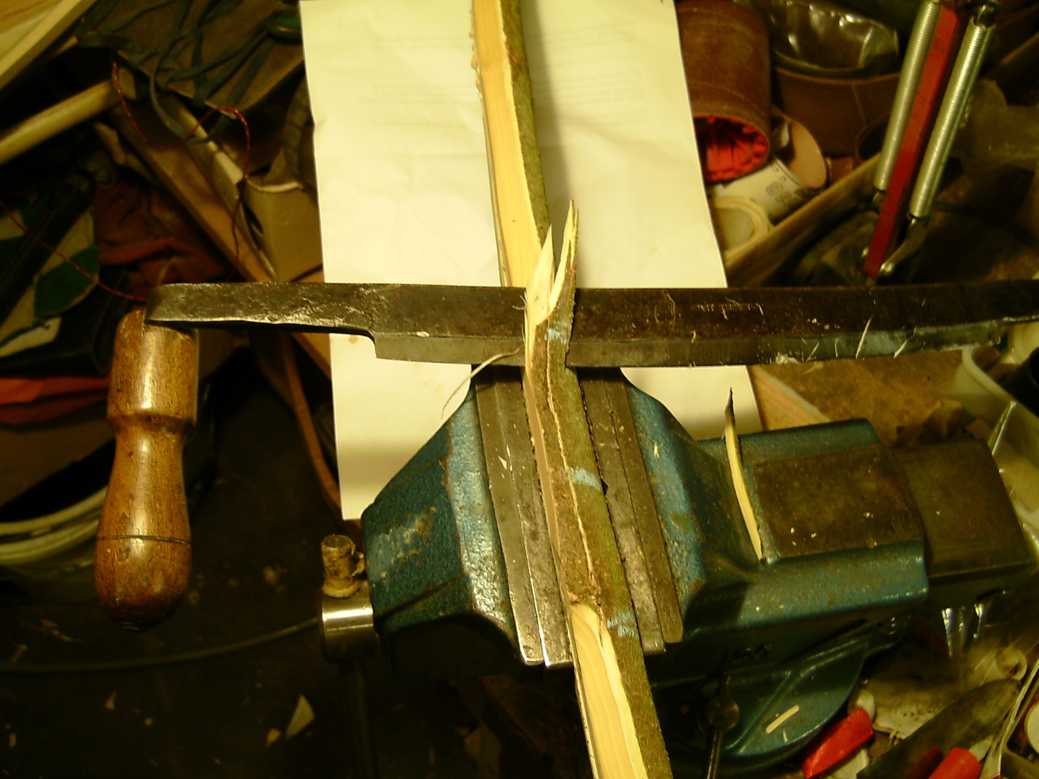 Also wird der Stave halbiert, der "Bogen im Holz gesucht"....