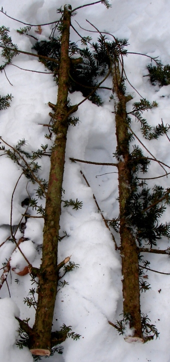 Zuerst war ich jedoch in einen Garten der bereinigt werden soll, bei der Eibe habe ich am Tag vor dem Schneefall angefangen, und wollte den Rest eigentlich nur für Snake-Jo zum drechseln schlagen. Jetzt habe ich mir zwei Spitzentriebe geholt.