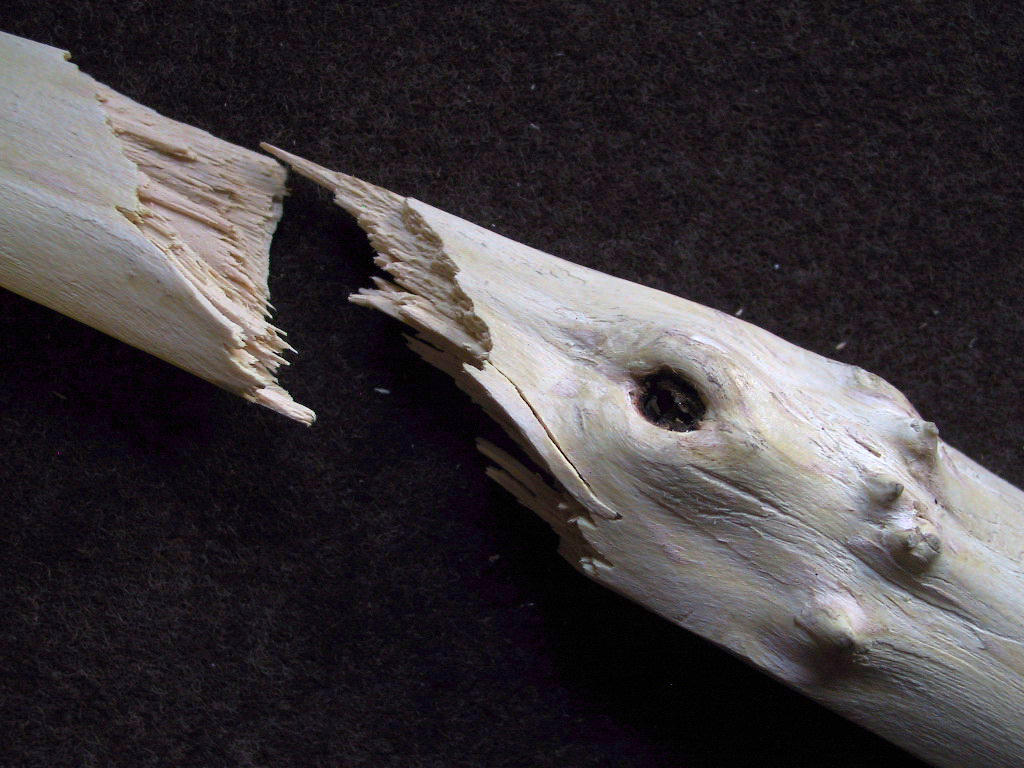 Irgendwie sieht die doch sehr glatte Bruchkante nach nicht sehr zugefestem Holz aus. ... oder übertrocknet ?