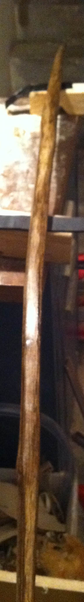 Anschließend noch mal eben mit der Raspel den Griffbereich etwas "handlicher" gestaltet. Fürs erste reichts. Die Würde der Feinarbeiten muß sich der Stock erstmal verdienen.
