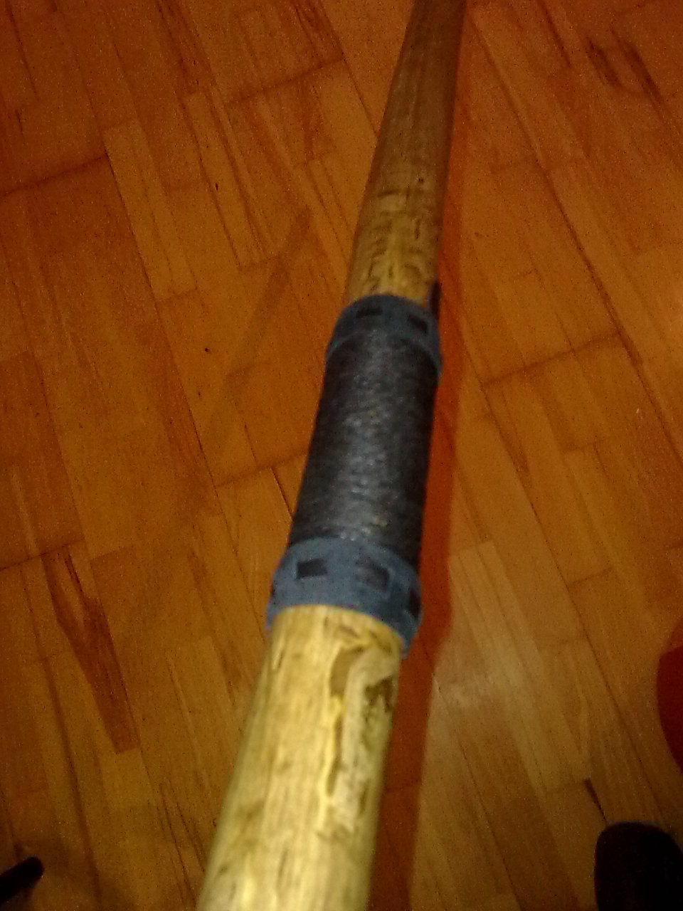 Nach dem runterarbeiten der WA bis auf/unter den Markkanal hat der Stave erstmal eine Nacht unterm Bett verbracht, bis ich dachte den könnte ich doch wegen des Knicks auf ne Latte aufspannen. Gesagt, getan (leider hab ich diesen Schritt nicht fotografiert) so hat der jetzt gut 3,5 Wochen gelegen.