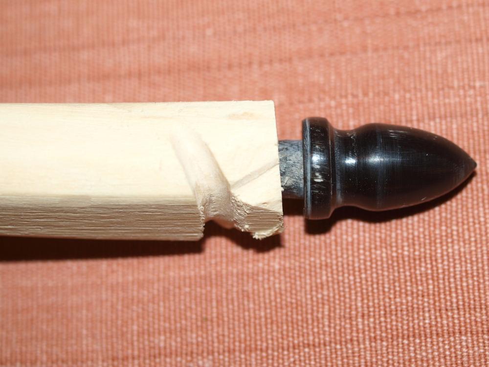 Der Markkanal wurde an den Bogenende ausgebohrt und ein Dübel aus Horn hinein geleimt, um die Nockkerbe zu verstärken.