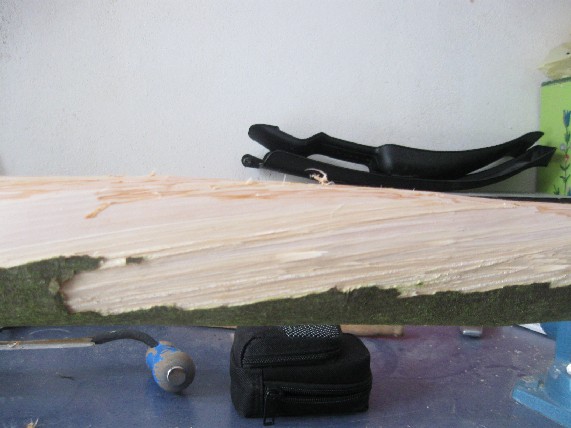 Und hier noch zwei Fotos vom gespaltenen Stamm, bei dem reflexen Stück hab ich schon etwas mehr Holz weggenommen, damit er nicht so viel mit sich rumschleppen muss, das Foto ist aber vorher entstanden.