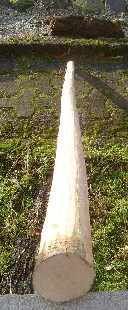 Ich hatte wirklich nicht vor so schnell wieder anzufangen: Aber seht selbst, die Versuchung war einfach zu groß:kerzengerade 2,5m lang, unten 5cm schlank, nicht die Spur von einem Ast oder einem anderen Fehler, eine makellose Rinde. Also ehrlich: ich kann mir auch nicht erklären warum ich ausgerechnet an diesem Tag das Victorinox Tool zum spazieren gehen dabei hatte...