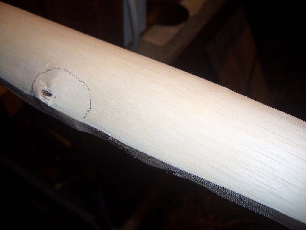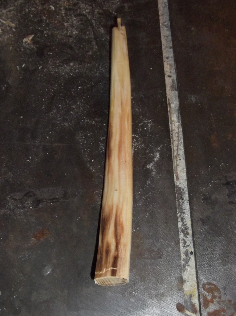 - aus einer anderen Eibenasthälfte ein Stück Kernholz als Griffauflage vorbereitet