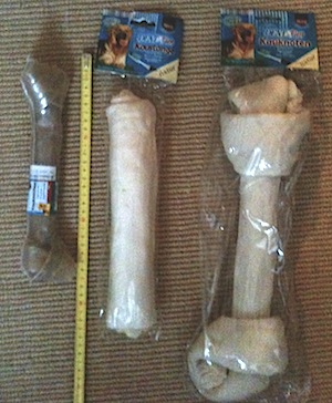 Der Komix kommt grad aus der Hunde-Fachhandlung und hat sich mal ein paar Exemplare Hundeknochen mitgebracht... mal sehen, wie viel Material sich hinter welchem Produkt verbirgt.