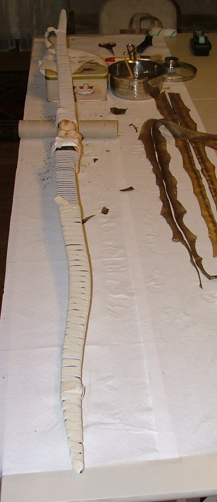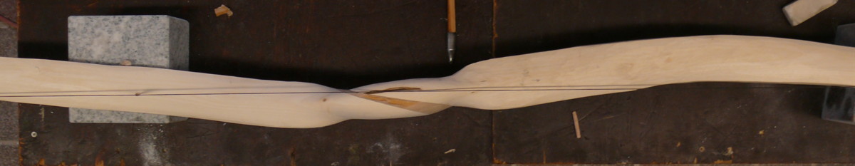 Plötzlich geht es. der Bogen bekommt zwar etwas Dauerbiegung, aber es wird ein Bogen.