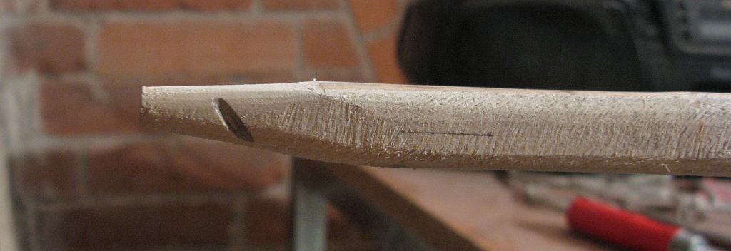 Die Holzspitze muss dünner werden und etwas kürzer, so dass man mehr Platz hat für eine schöne Form...