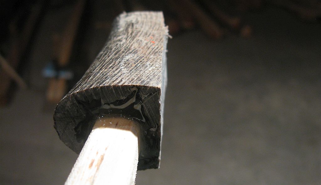 Tipp: Klebe vor dem Raspeln den Holzbereich unmittelbar an der Hornnocke mit Klebeband ab. Das reduziert die Gefahr, mit der Raspel da das Holz zu verletzen.
