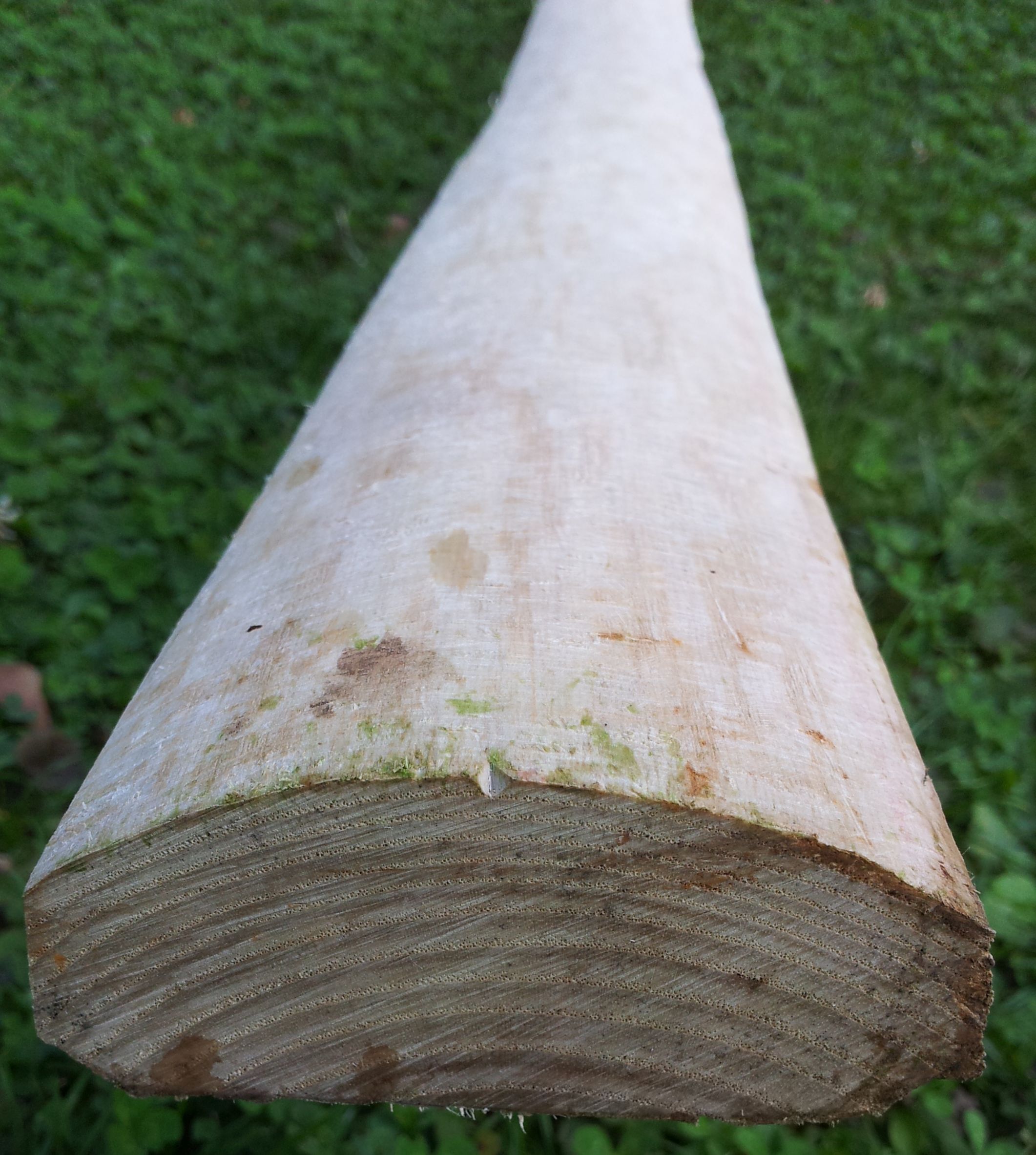 Dass ein stave-Ende so schräg geschnitten ist macht nix - in der Mitte sieht das Holz dick genug aus.