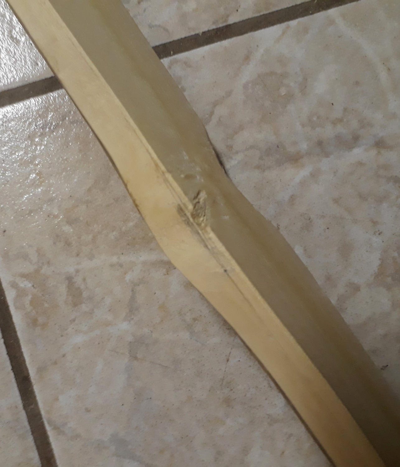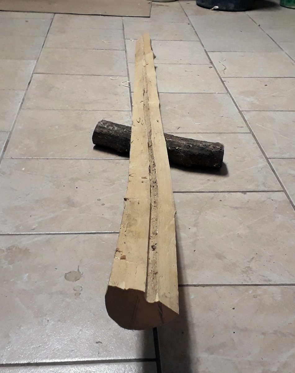 Der Bogen, den ich beabsichtige zu bauen, wird aus einem Stück Holunder geschnitzt werden. Den Rohling stufe ich mit meiner beschränkten Erfahrung als sehr gut ein. Die Frage, die ich mir aber stelle bezieht sich auf die Wahl des geeigneten Jahresrings. Der Außenring ist grundsätzlich unbeschädigt und würde mir viel Arbeit ersparen, wenn ich den gleich als Außenring verwende. Allerdings fällt er im Vergleich zum darunterliegenden doch erheblich flacher aus.