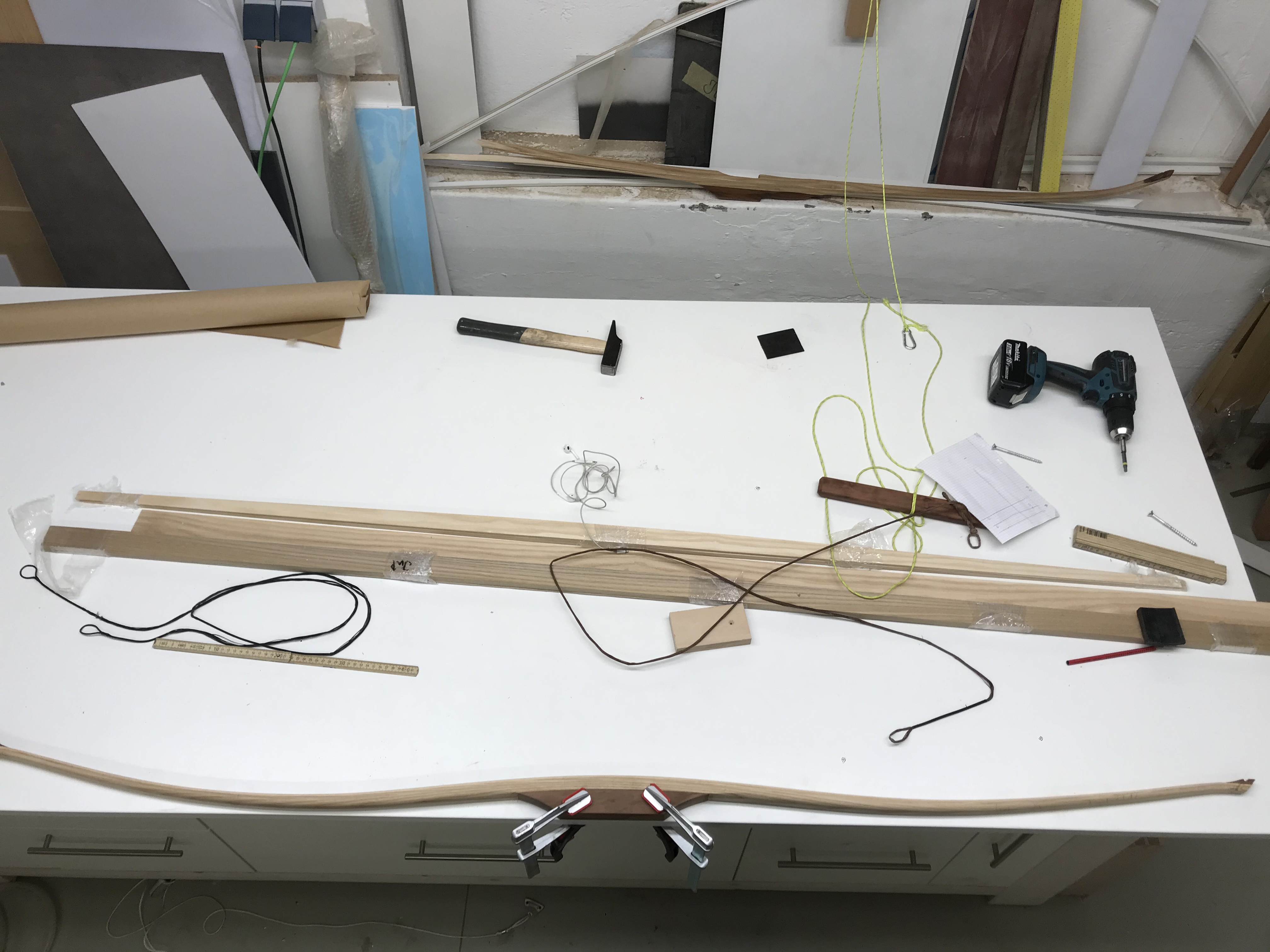 Beim verleimen ist mir wohl ein Fehler unterlaufen (mit Distanz Klötzen, Zwingen und Fahrradschläuchen) ist die Biegung nicht symmetrisch zu einander.